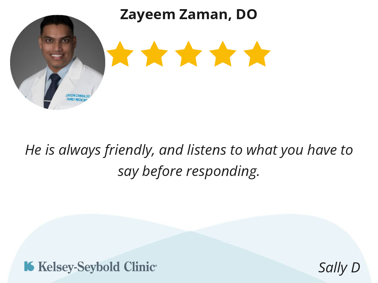 I love Dr Zaman! I love his energy and he is really passionate about his profession. I would highly recommend anyone to Dr Zaman and personally I’m making him my personal PCP