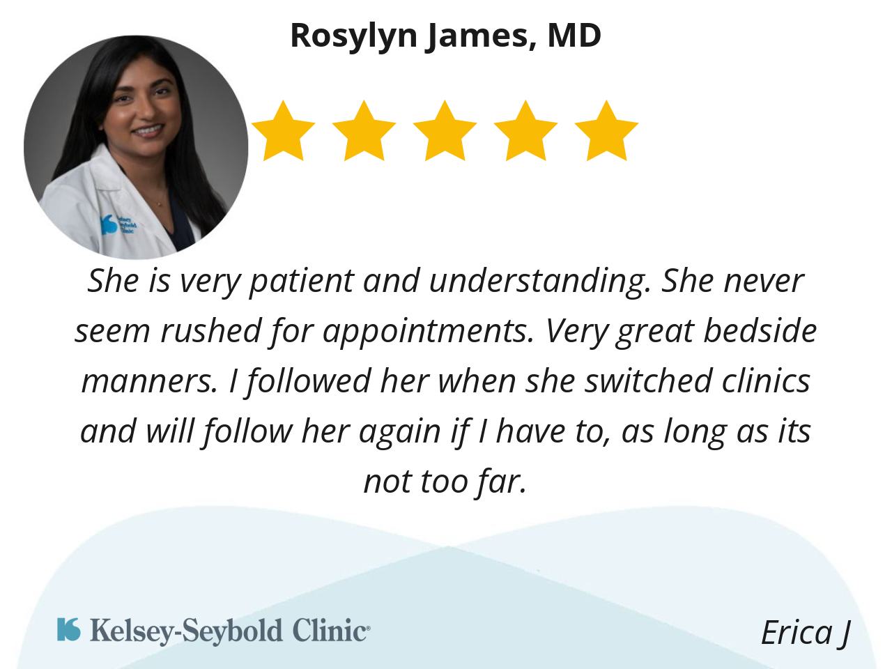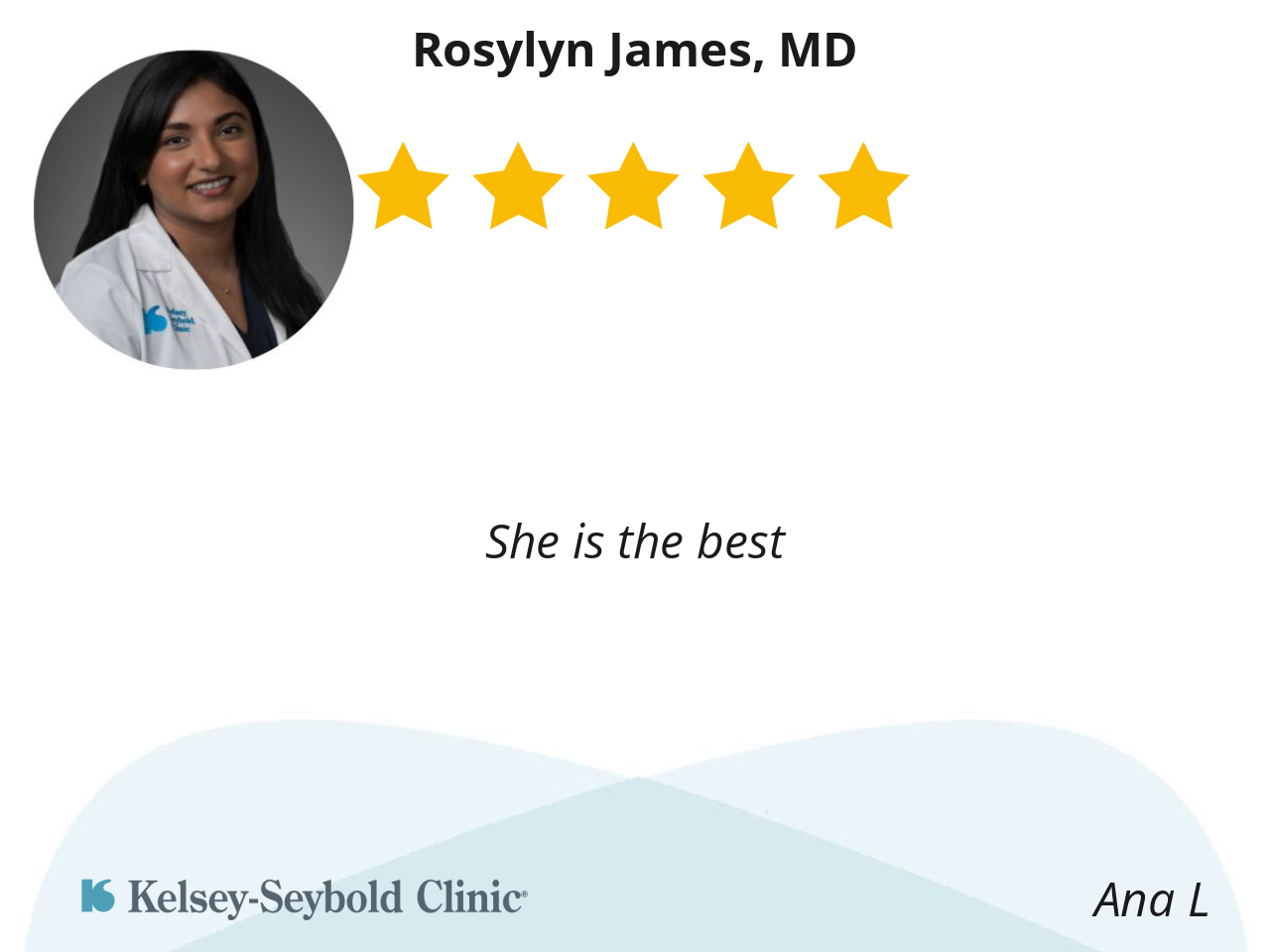 I like that Dr. James explains everything clearly and waits for your questions. She is quick to answer when I have questions on the portal. She has developed trust in her recommendations, opinions and medical advice.