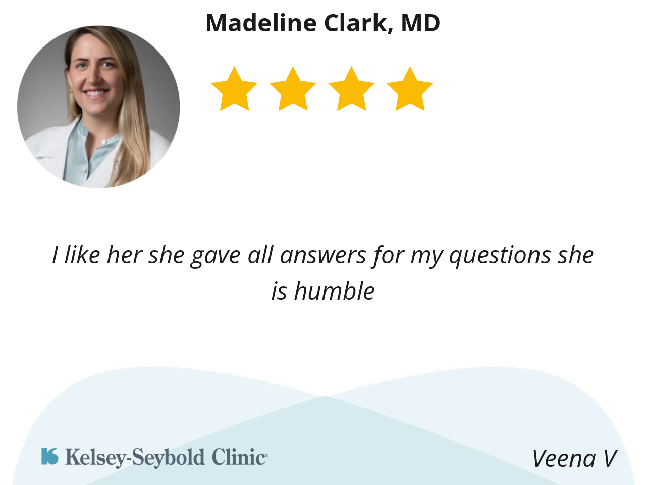 This was my first time seeing Dr. Clark. I was so impressed with her knowledge, thoroughness, how well she listened, and her bedside manner. As a nurse I would 100% recommend her!