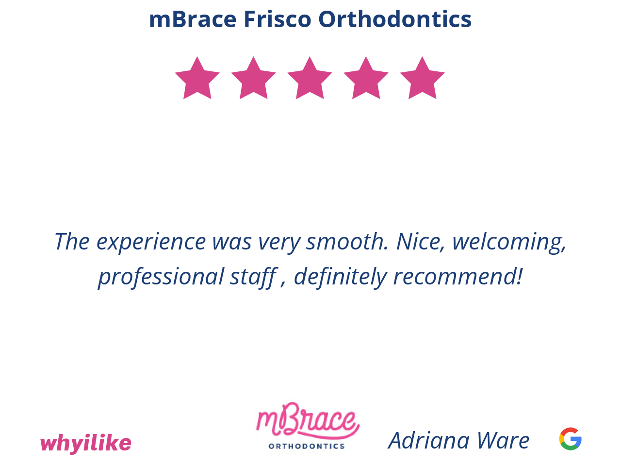 I have trusted Dr. Shireen with both my daughters' smiles since their grand opening. We are 100% satisfied with the results!! It is now my turn to improve my smile and have chosen MBrace for my Invisalign treatment. I am thrilled to finally be able to treat myself to straighter teeth. I know for a fact that I'm in the best hands with Dr. Shireen and her wonderful staff.