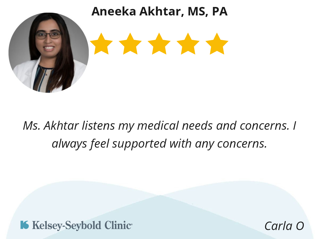 Ms. Akhtar listens my medical needs and concerns. I always feel supported with any concerns.