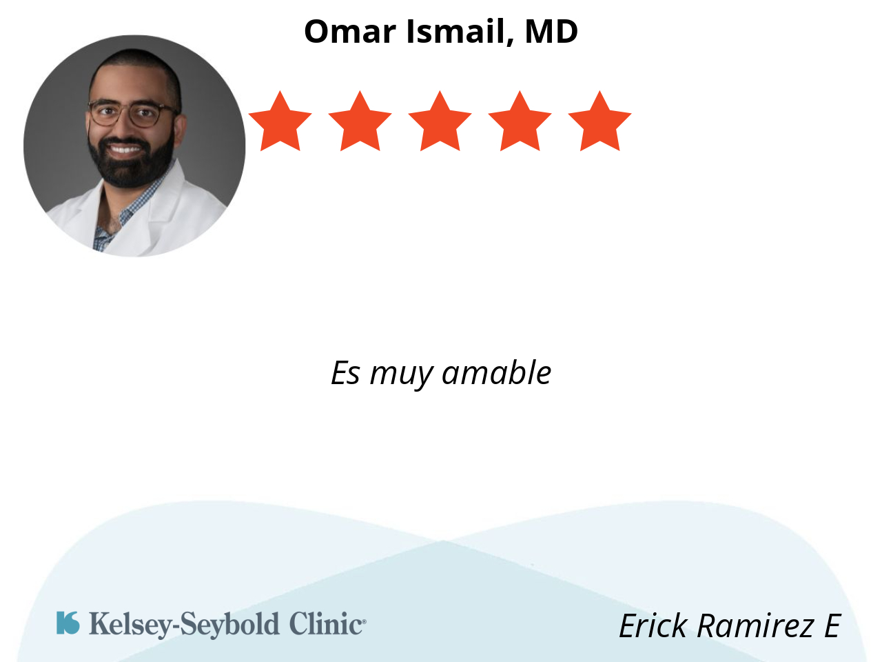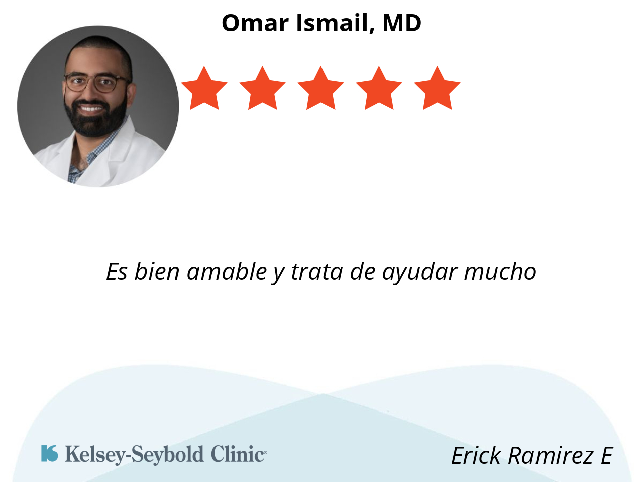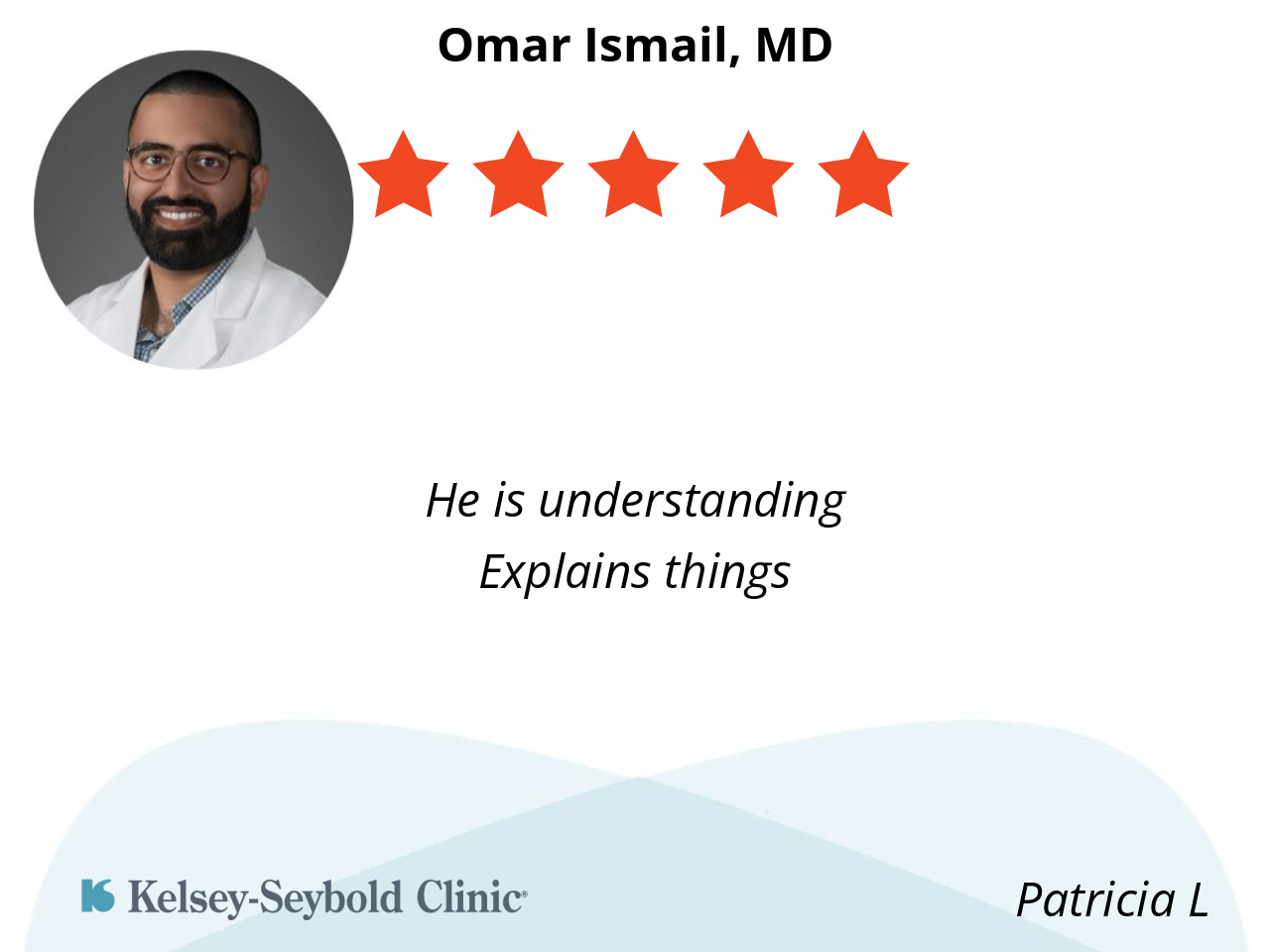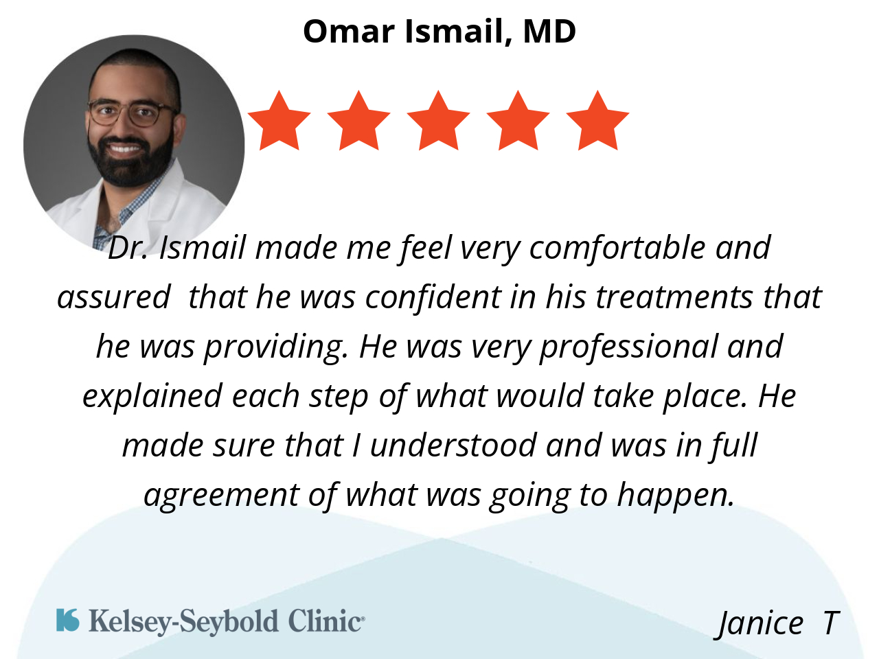 Dr. Ismail made me feel very comfortable and assured that he was confident in his treatments that he was providing. He was very professional and explained each step of what would take place. He made sure that I understood and was in full agreement of what was going to happen.