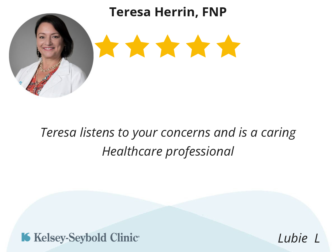 NP Teresa Herrin is the reason , I love the Kelsey experience. She makes you feel like you’re not just a number or patient. Especially, for me since I suffer from health anxiety. She, took the time to go over my bloodwork and talk about everything: she was through and I trust her with everything she was saying. It’s nice to have someone like her knowing I can, go to her for my health. I feel like she would actually listen to me and not just brush me off or things off that I’m telling her. I really hope she continues to work for Kelsey and stay at the Kingwood location!