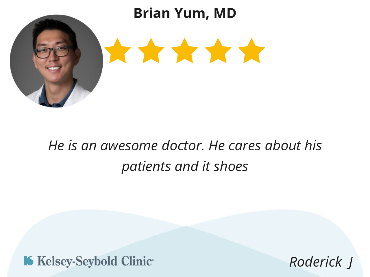 I can always feel his depth of caring and concern for me as his patient. I think he is an awsome doctor