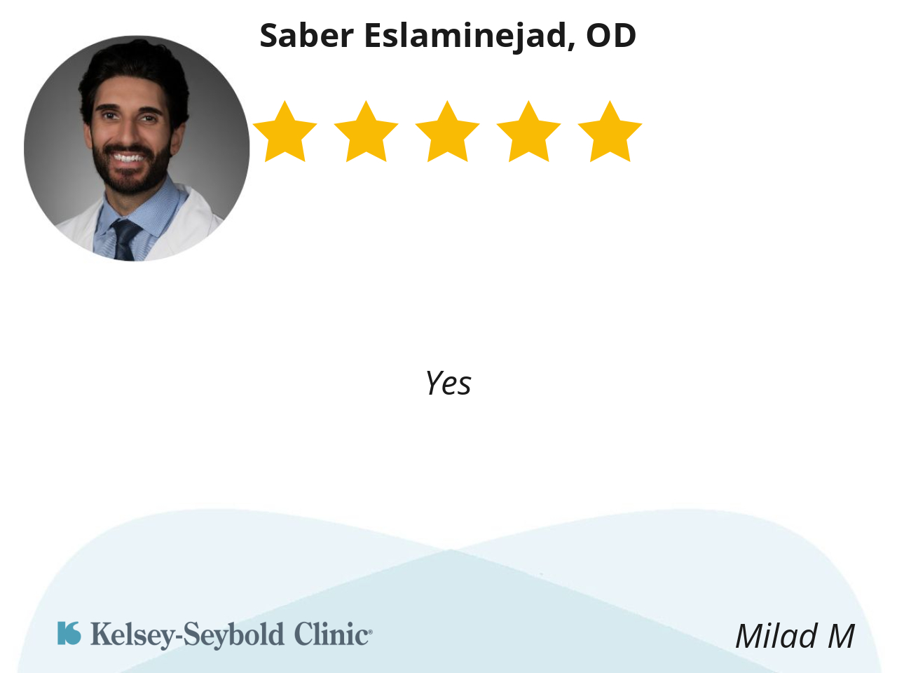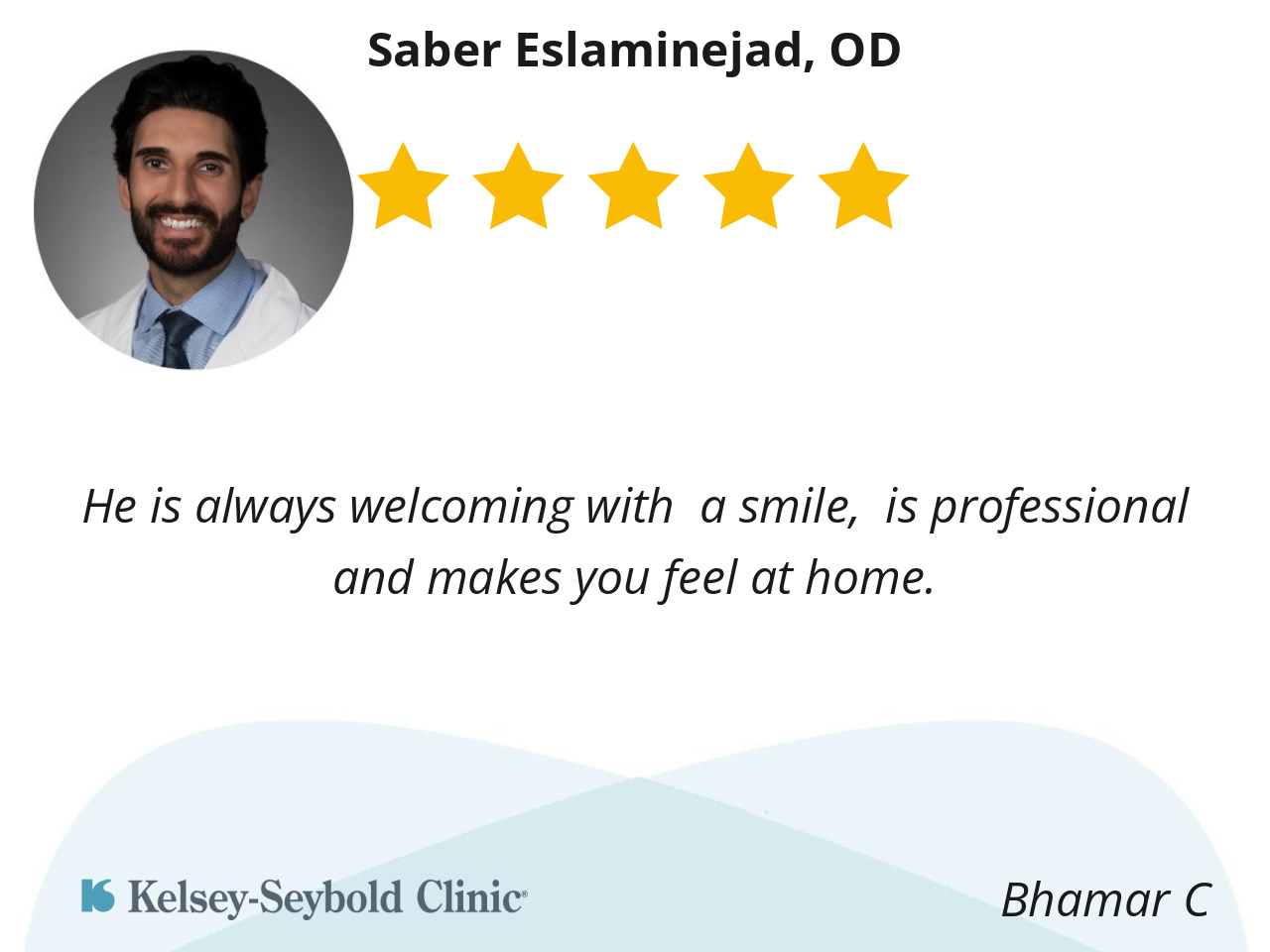 Dr Eslamijad was super. He listened to my concerns and he was very thorough. I can highly recommend him.