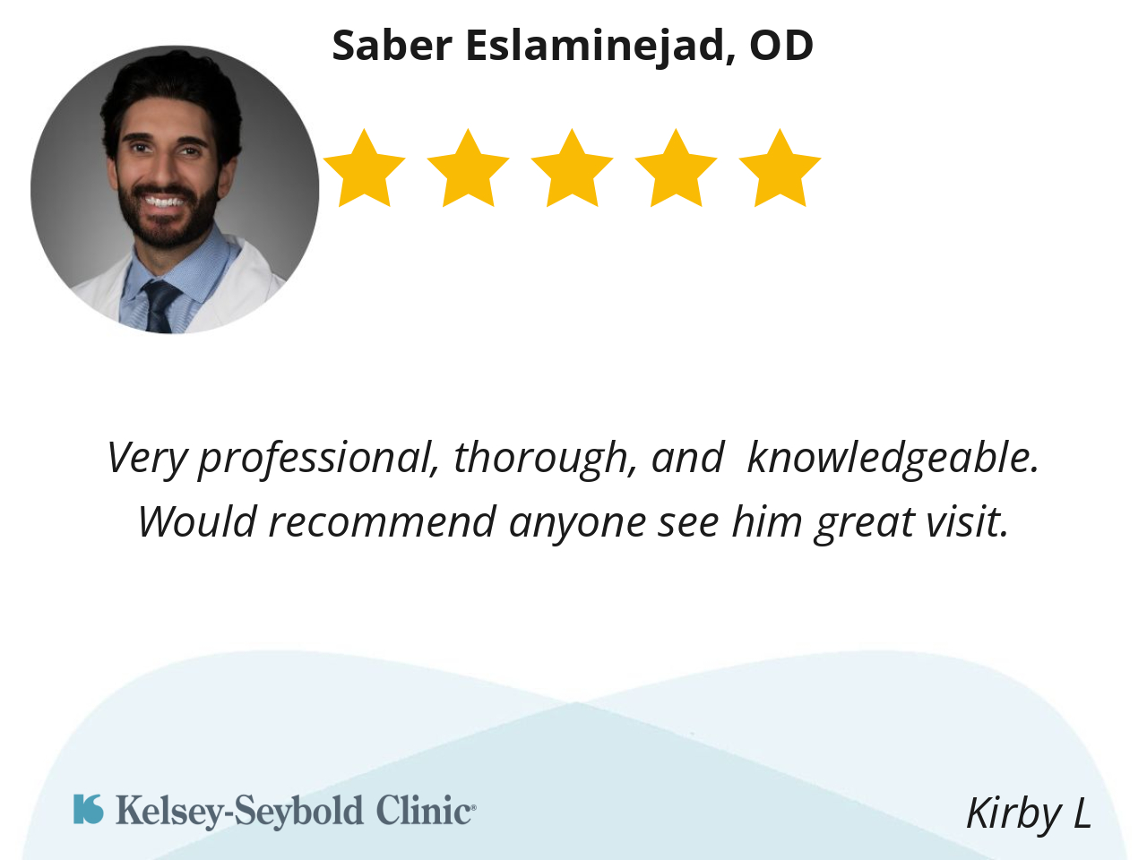 having eye examinations, this one was the very best! Kelsey has hired the perfect OD of Optometry!