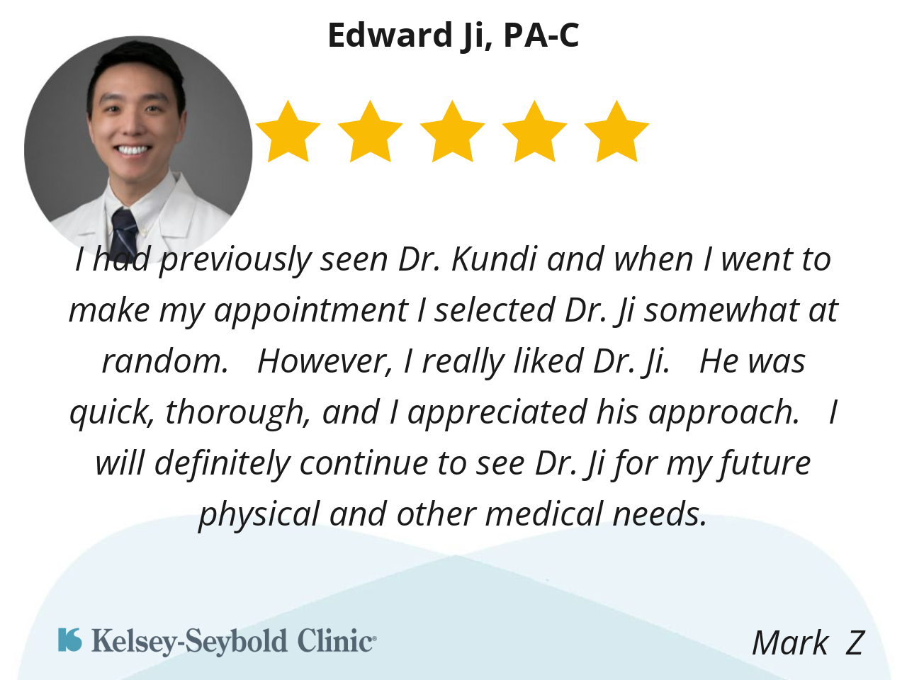 I had previously seen Dr. Kundi and when I went to make my appointment I selected Dr. Ji somewhat at random. However, I really liked Dr. Ji. He was quick, thorough, and I appreciated his approach. I will definitely continue to see Dr. Ji for my future physical and other medical needs.