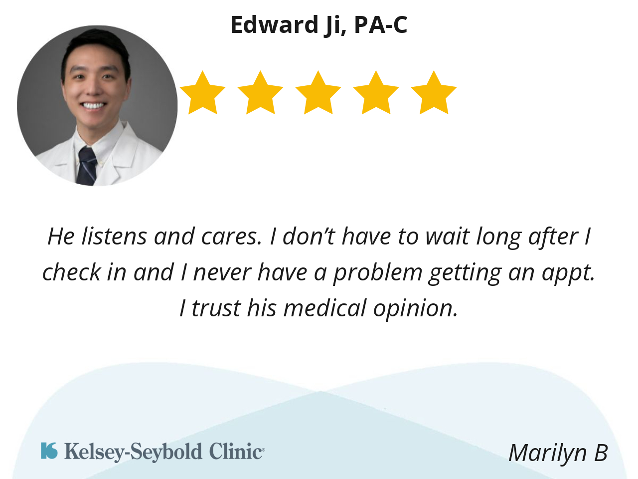 He listens and cares. I don’t have to wait long after I check in and I never have a problem getting an appt. I trust his medical opinion.