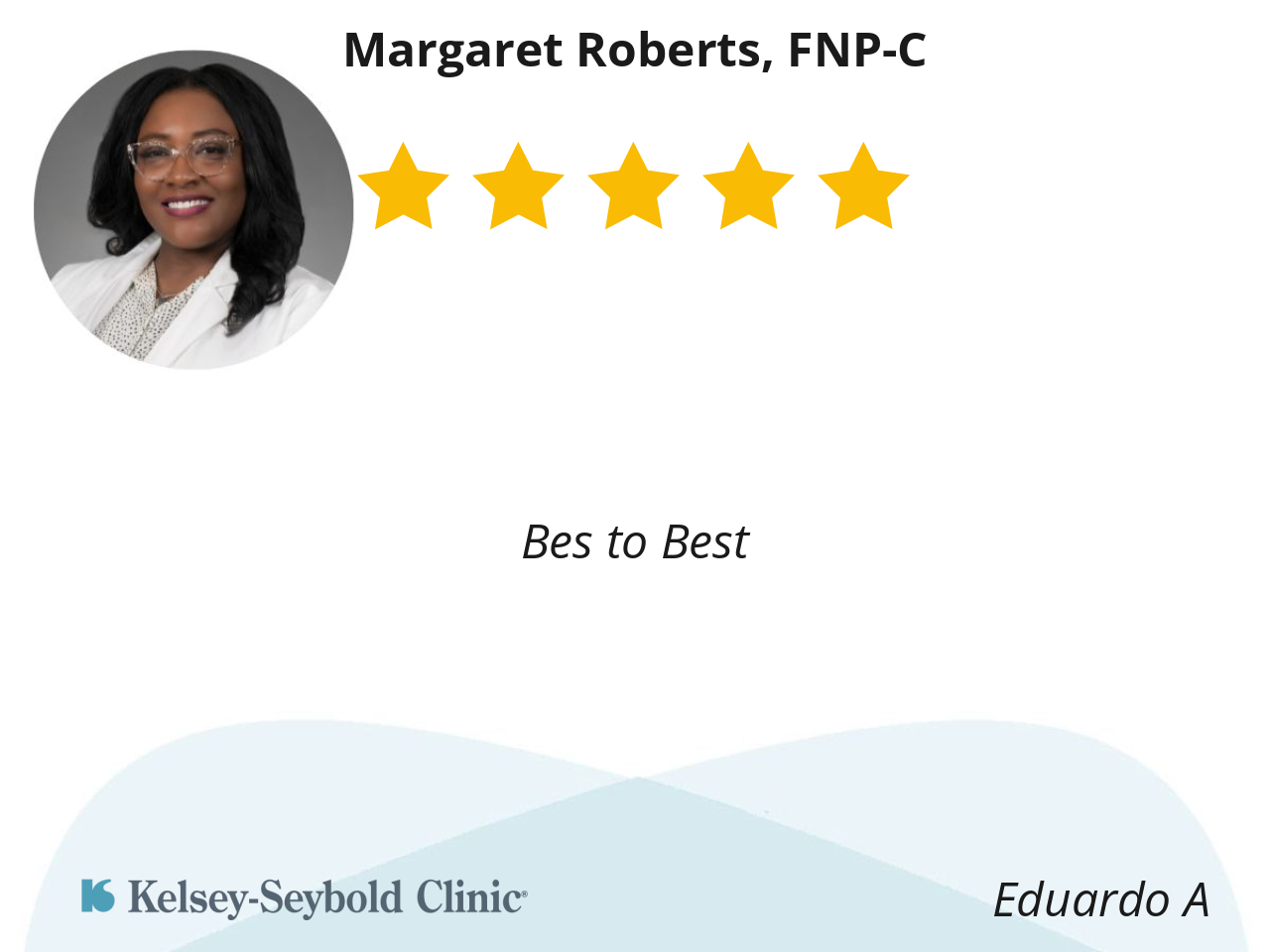 Dr. Roberts is a naturally nice and she is very informative too. Anytime I have concerns regarding health( blood pressure readings). Dr. Roberts prescribes meds that will help to get my blood pressure better and she encourages me to focus on healthier living.