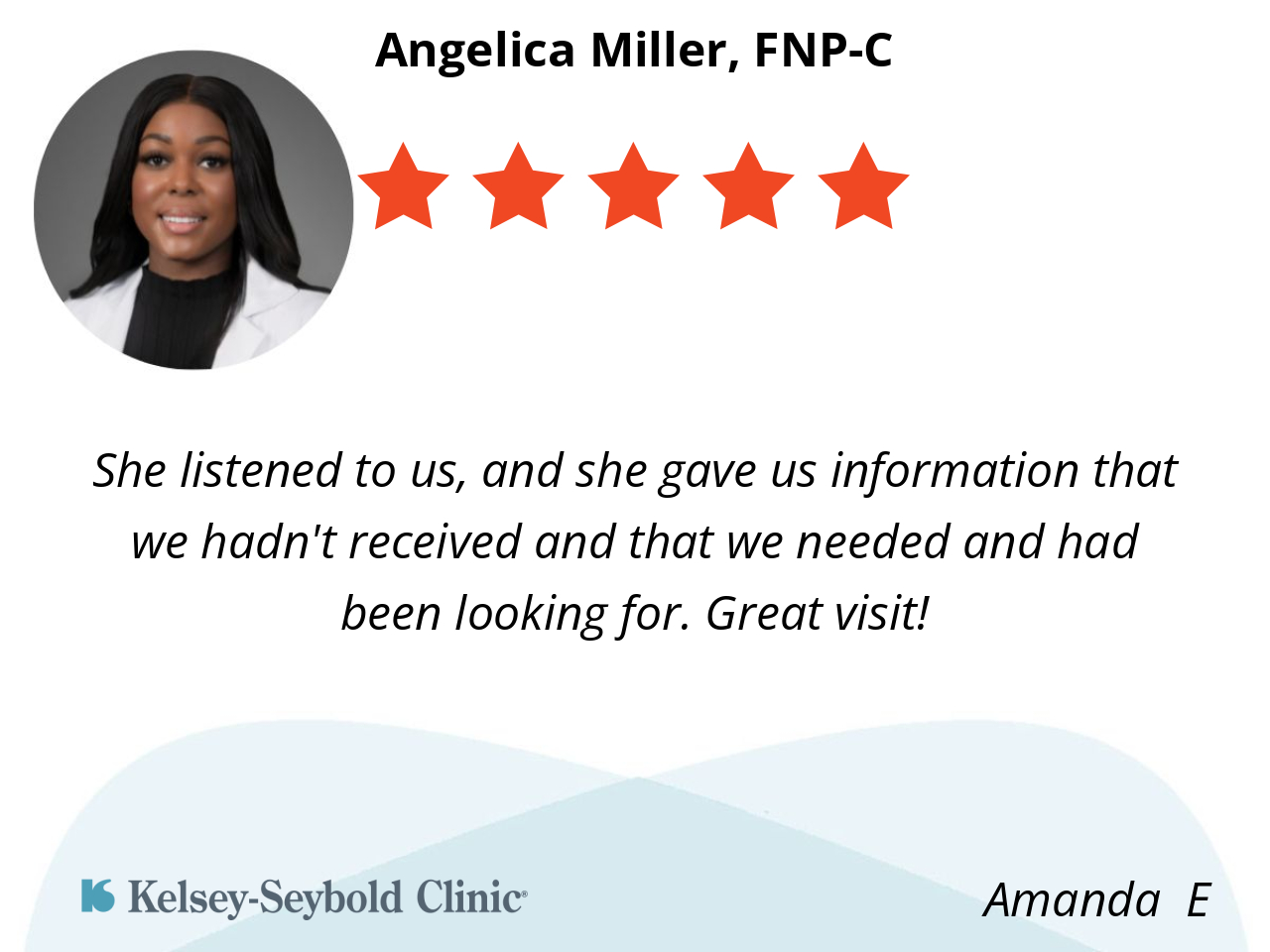 She listened to us, and she gave us information that we hadn't received and that we needed and had been looking for. Great visit!
