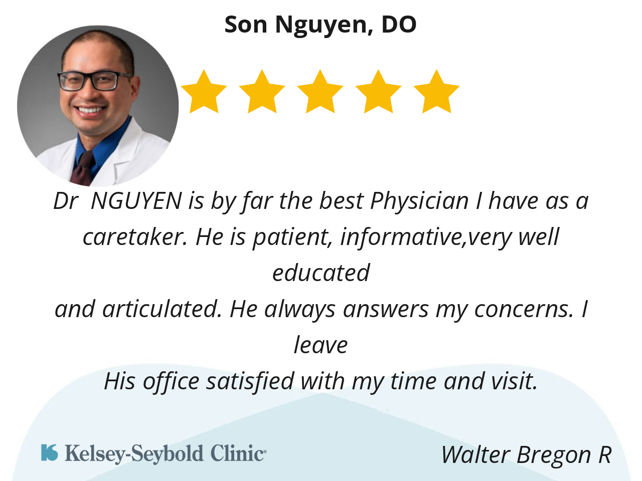 Dr NGUYEN is by far the best Physician I have as a caretaker. He is patient, informative,very well educated