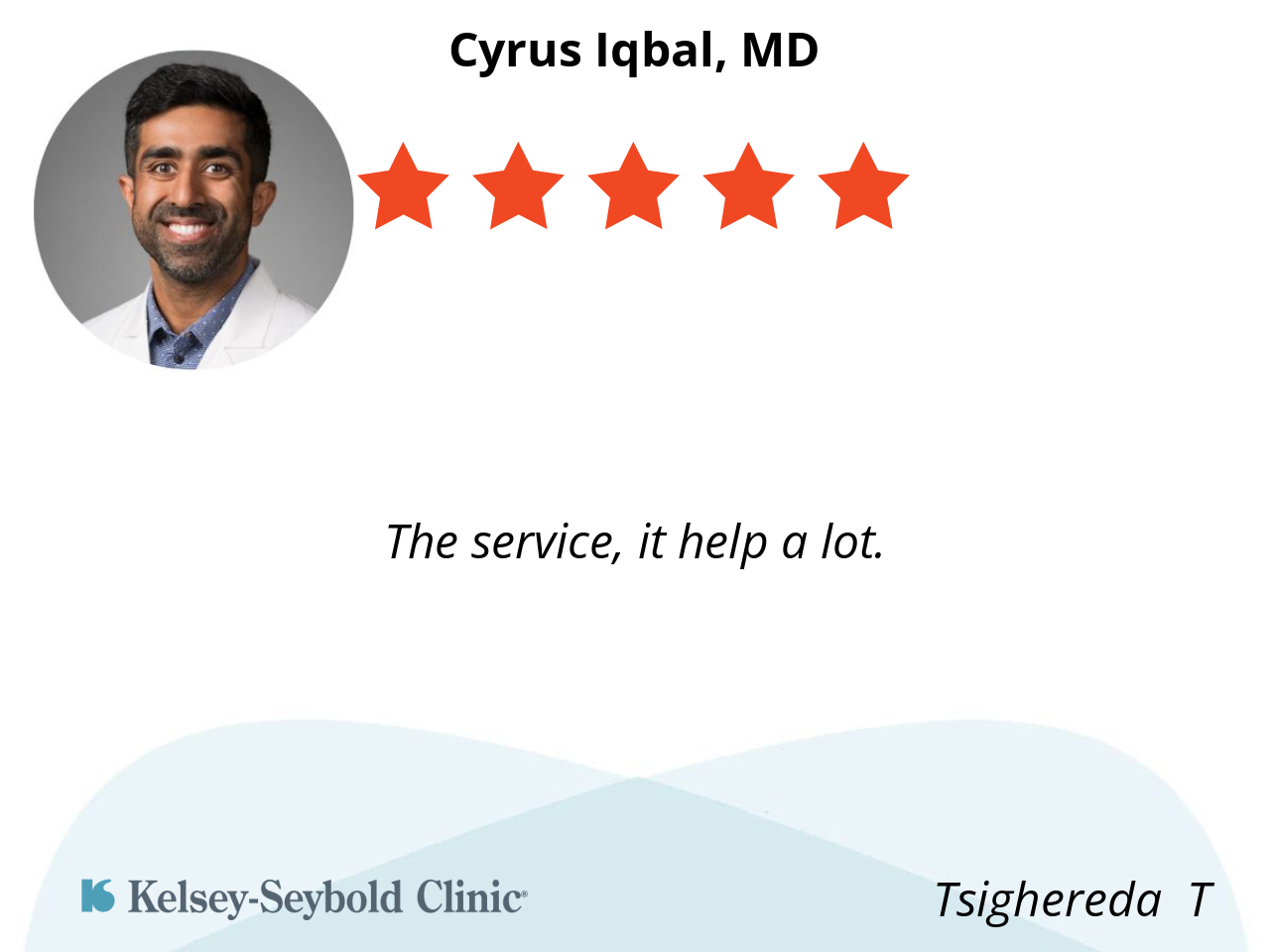I really liked Dr. Iqbal. He explained everything, had a plan, and I left feeling confident.