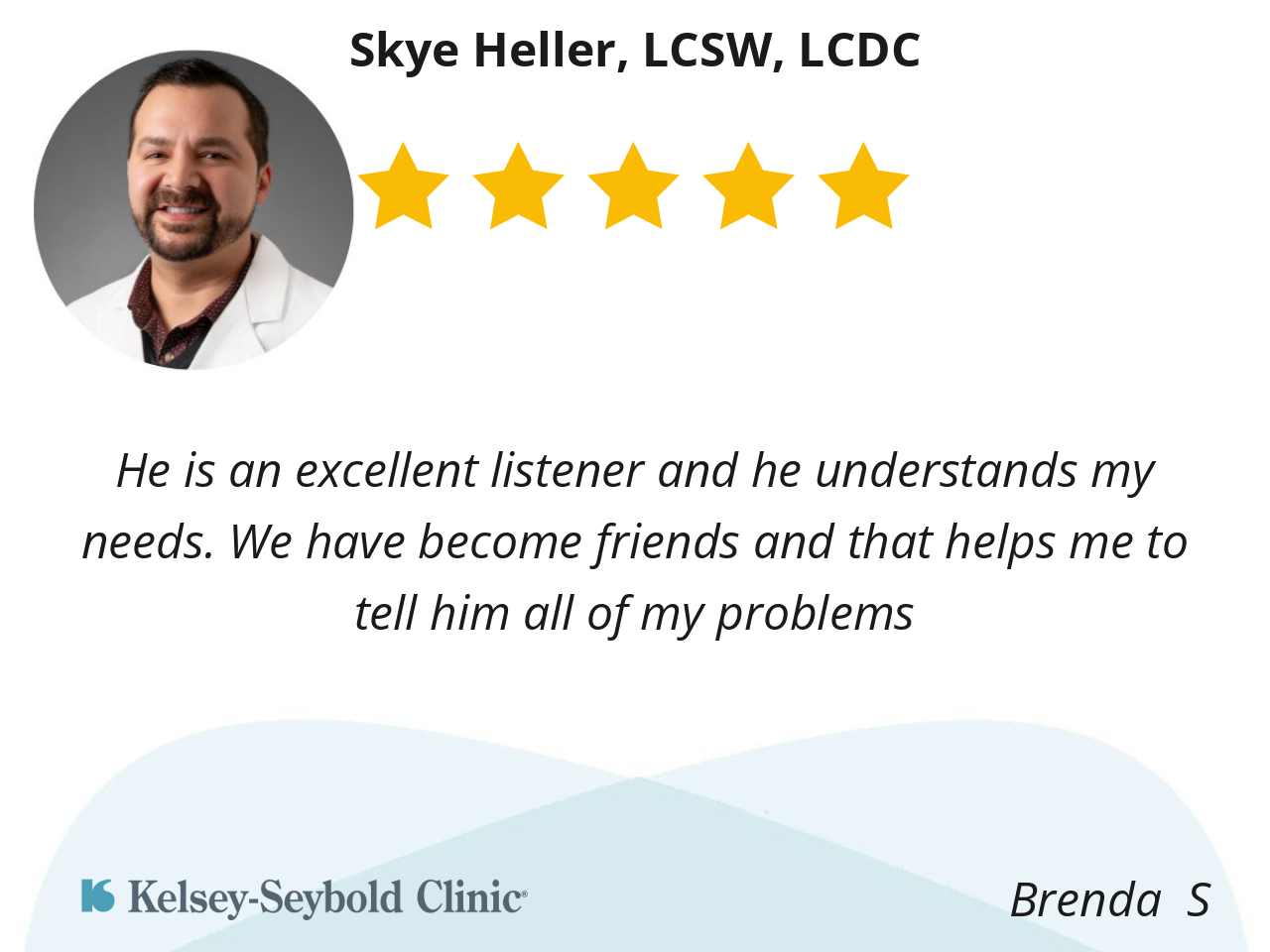 He is an excellent listener and he understands my needs. We have become friends and that helps me to tell him all of my problems