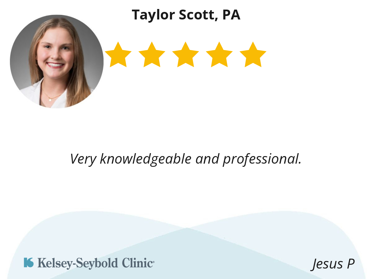 Taylor Scott was very informative in dealing with my medical issues. I would rank her very highly. She provided several solutions to my urinary problem.