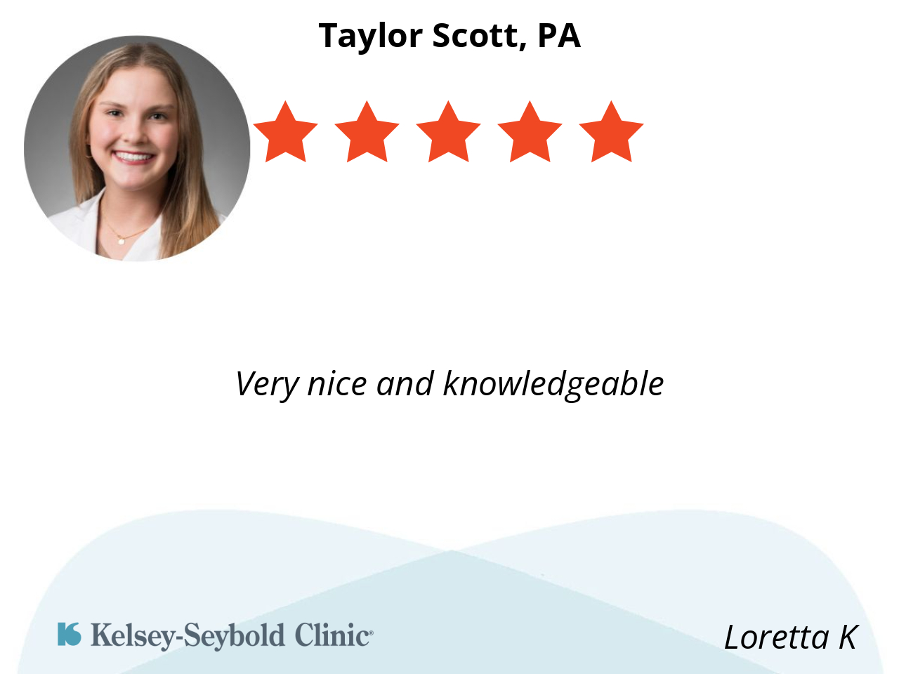 Dr. Scott is professional yet friendly. I am happy with her care and knowledge of my condition.