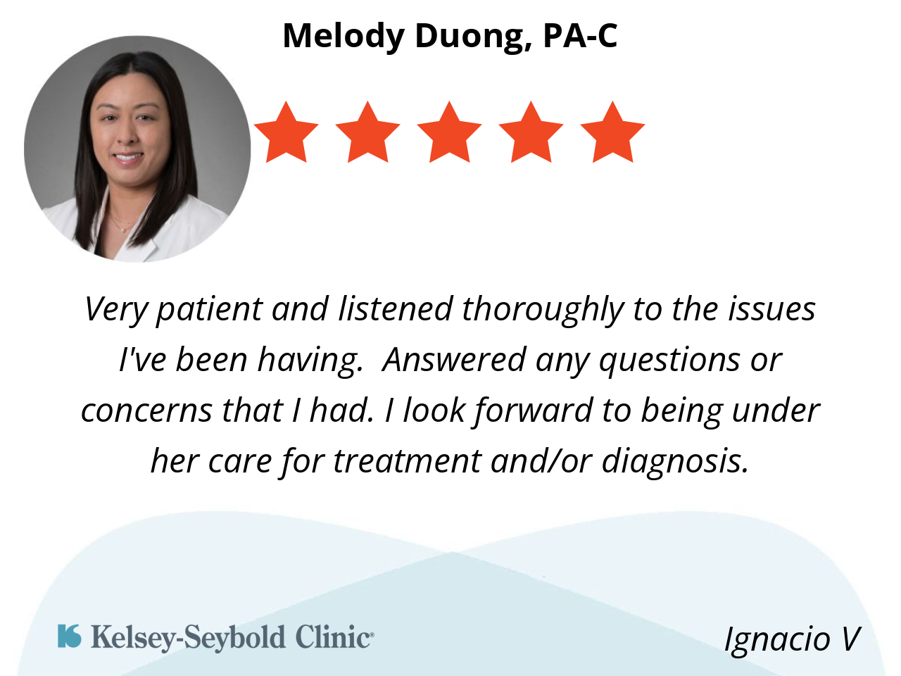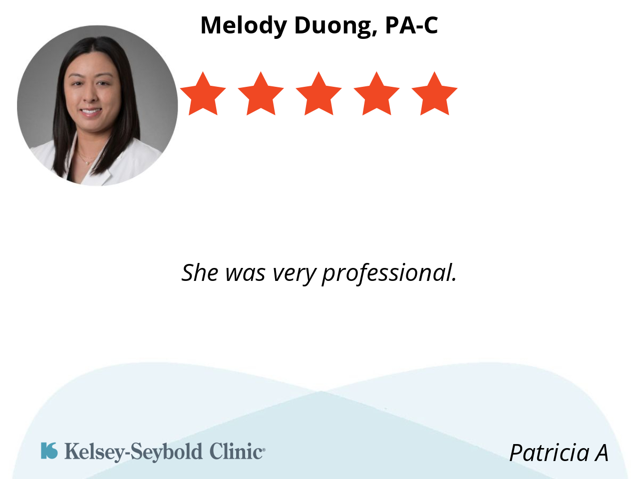 Because she is kind efficient and let's you know every detail about your visit.