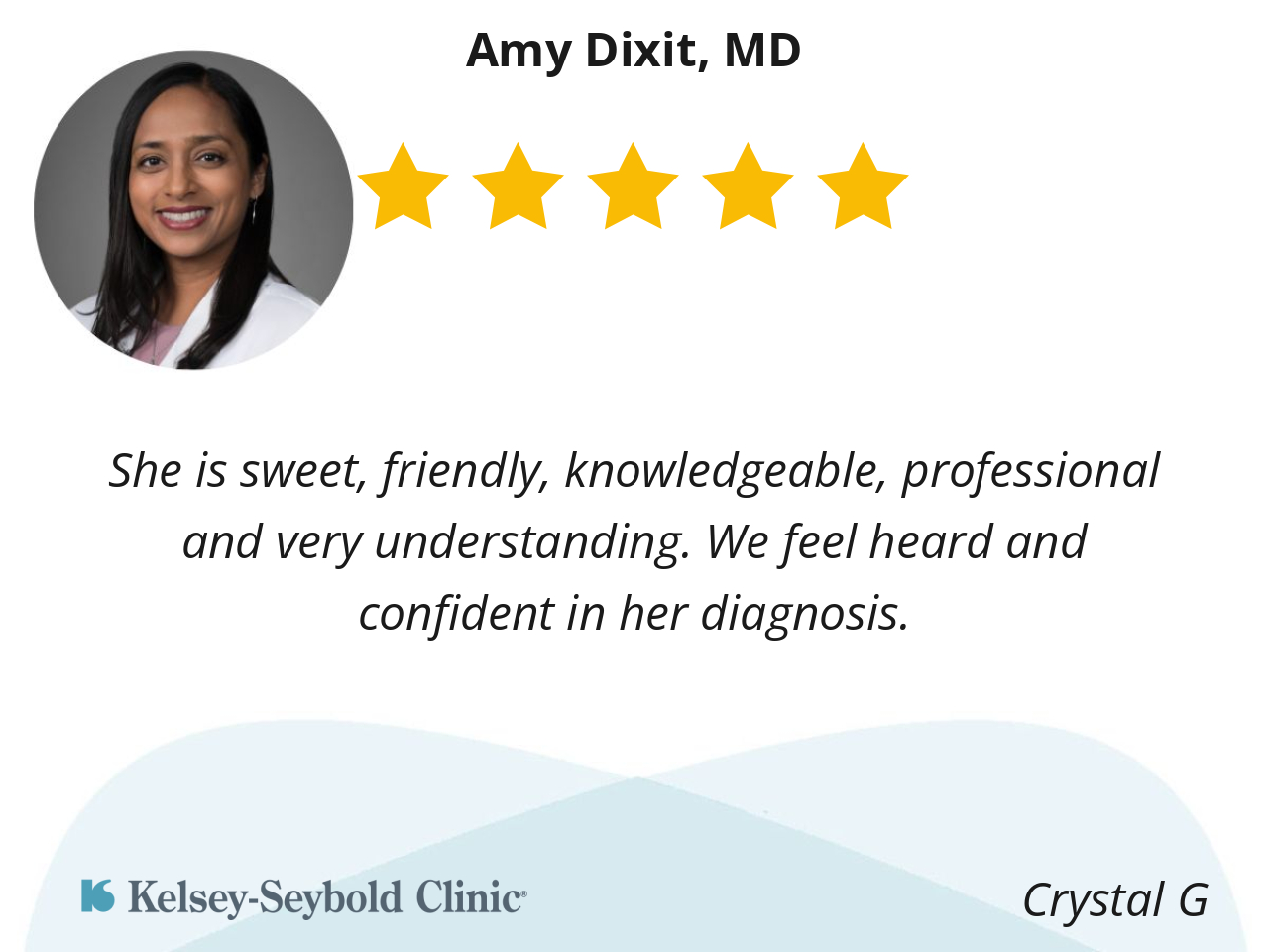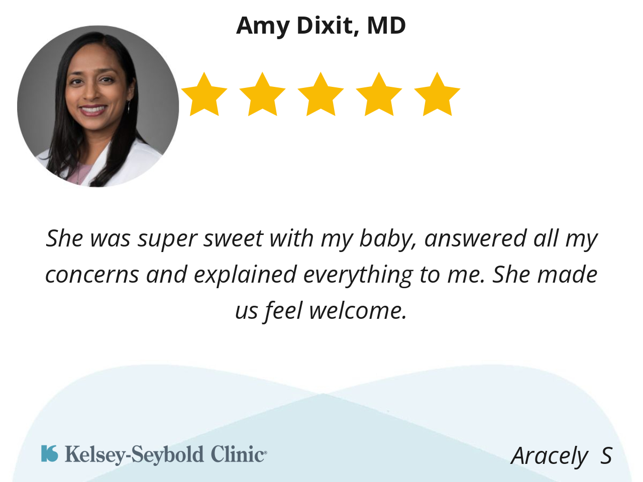 Dr. Amy Dixit is awesome! She’s so knowledgeable, very sweet, caring, and friendly! My baby and I love her! She always makes the visits enjoyable. ❤️