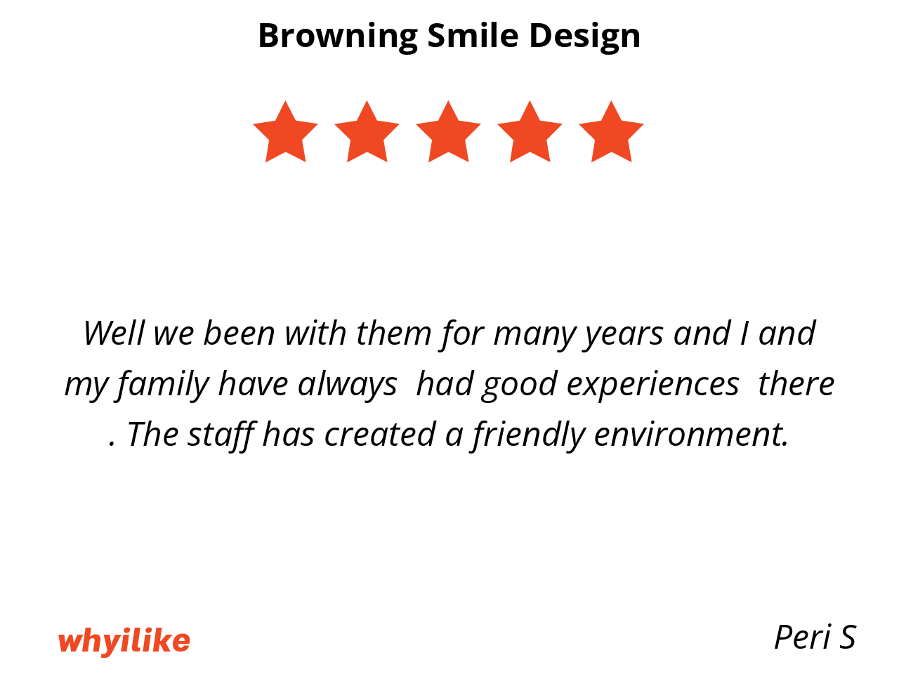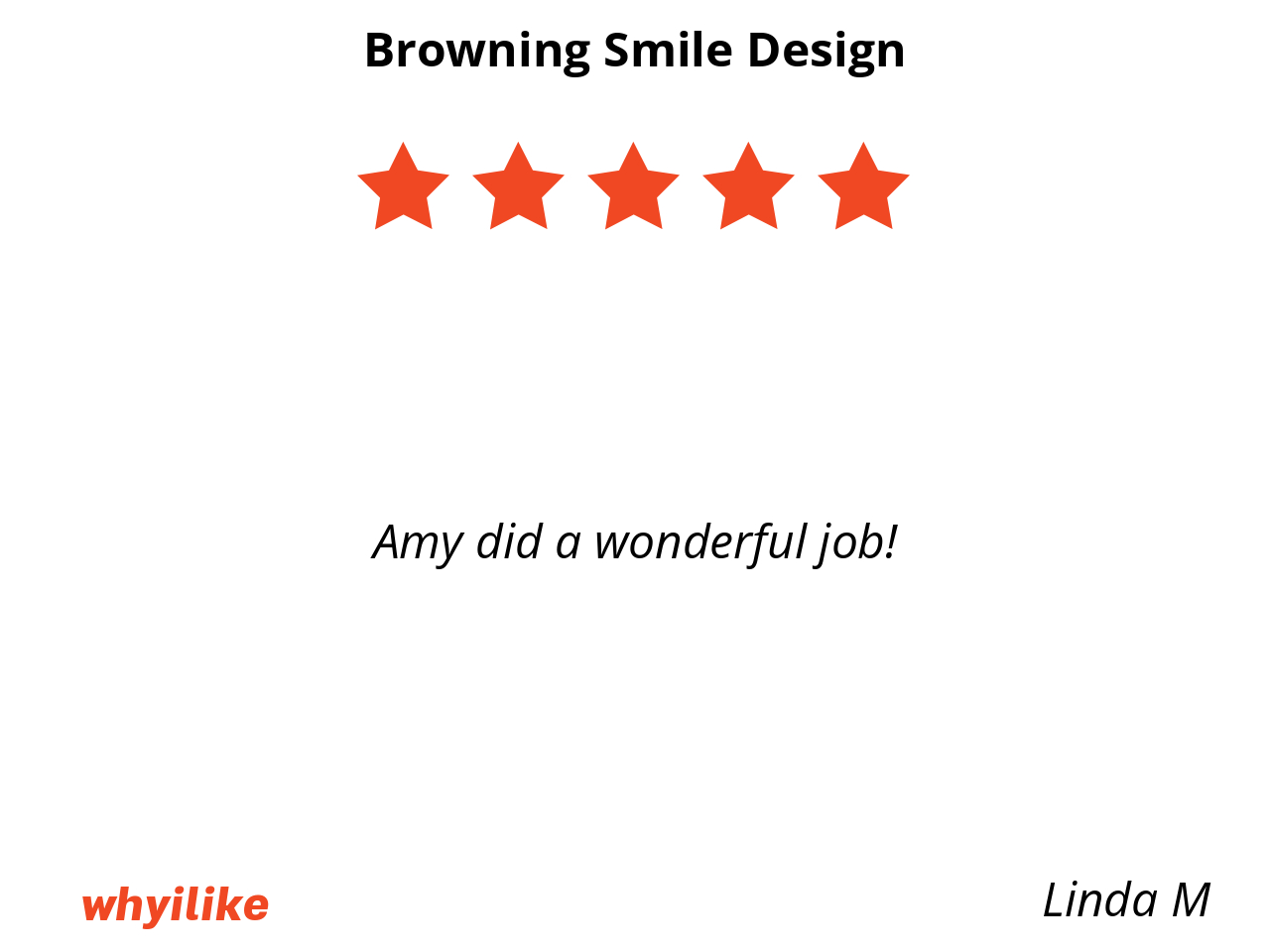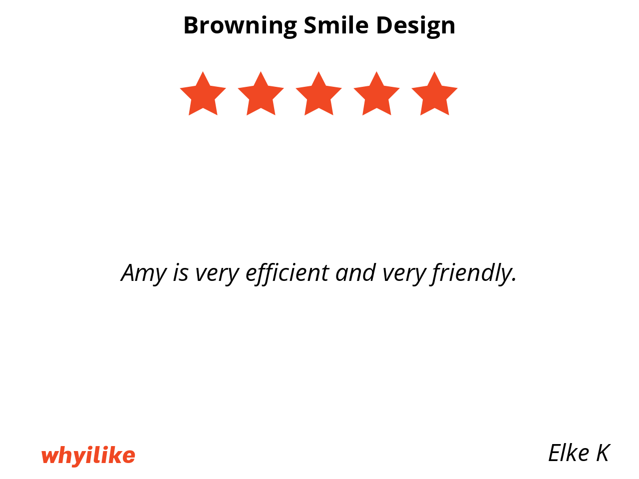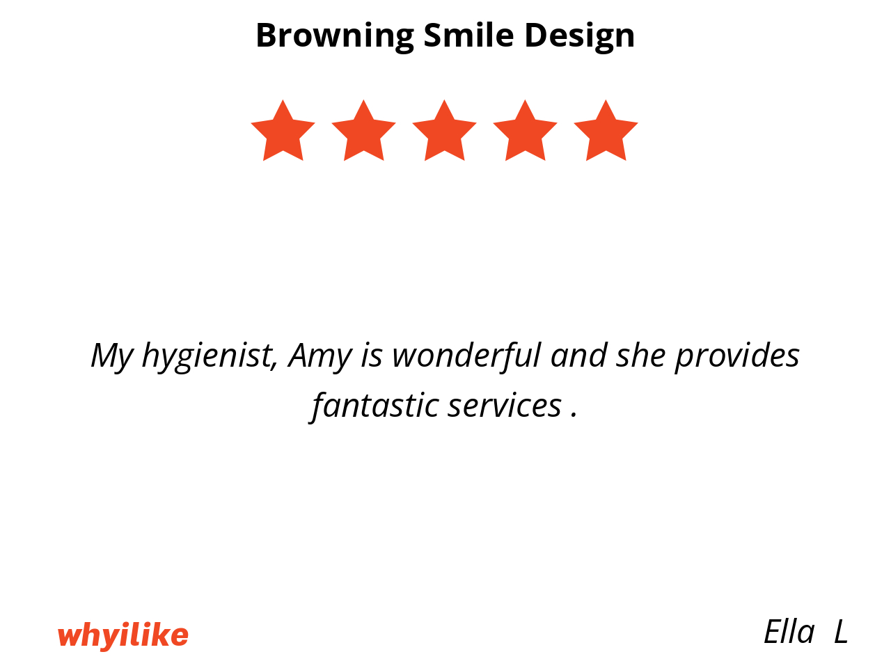 Everyone was so nice and welcoming! Amy is probably the best hygienist I have EVER had! My teeth are so clean now despite my coffee and matcha latte drinking. Dr. Browning is also very nice as well! The previous dentist I went to didn’t even introduce themself before examining my teeth. My experience with Dr. Browning was the complete opposite. He is very knowledgeable, explains things well and is honest. He even has a sense of humor! Can’t wait to continue with my new dentist and hygienist. Also the office is very nice as well! I would highly recommend Browning Smile Design to anyone!