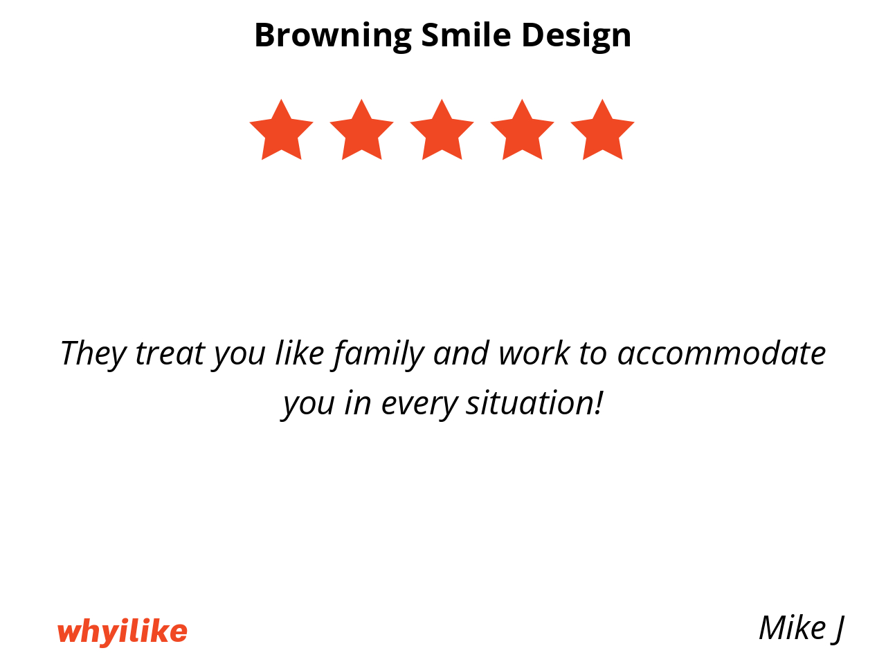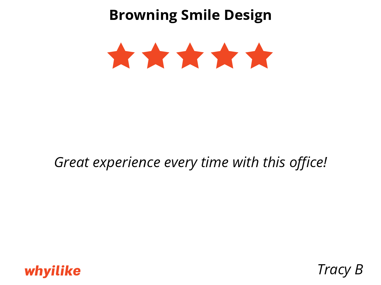 I’ve been going to Browning Smile Design for 20 years and I will never change dentists! I love it here, everyone is so nice and it’s just a great experience every time! Amanda is also so great!! and patient when I bring in my little ones with me.
