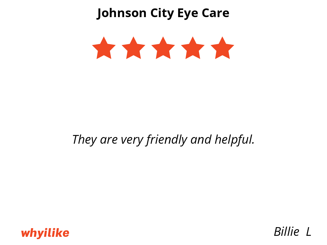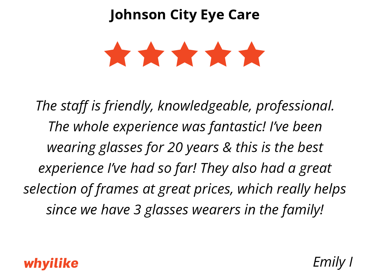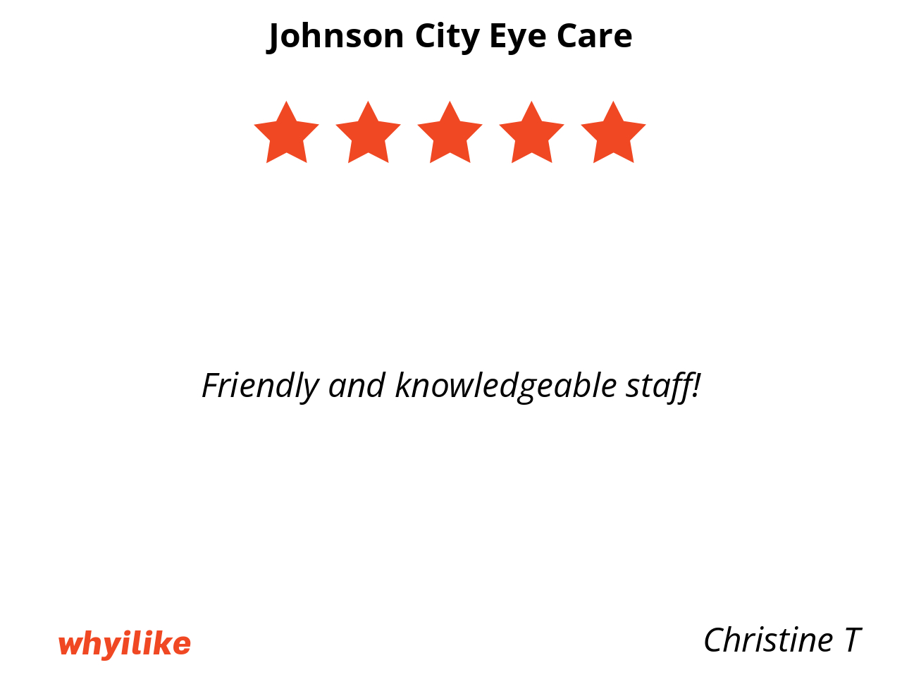 Johnson City Eye Care is local and convenient. Everyone is very nice and helpful.