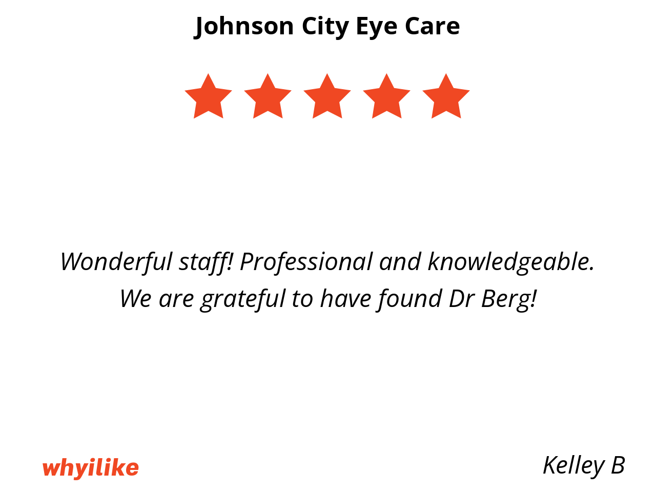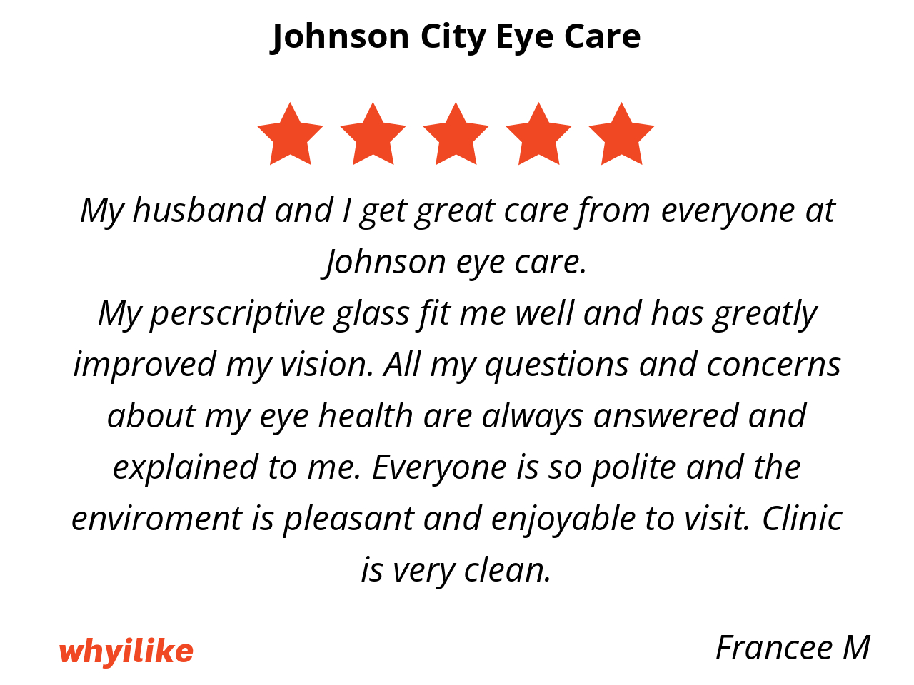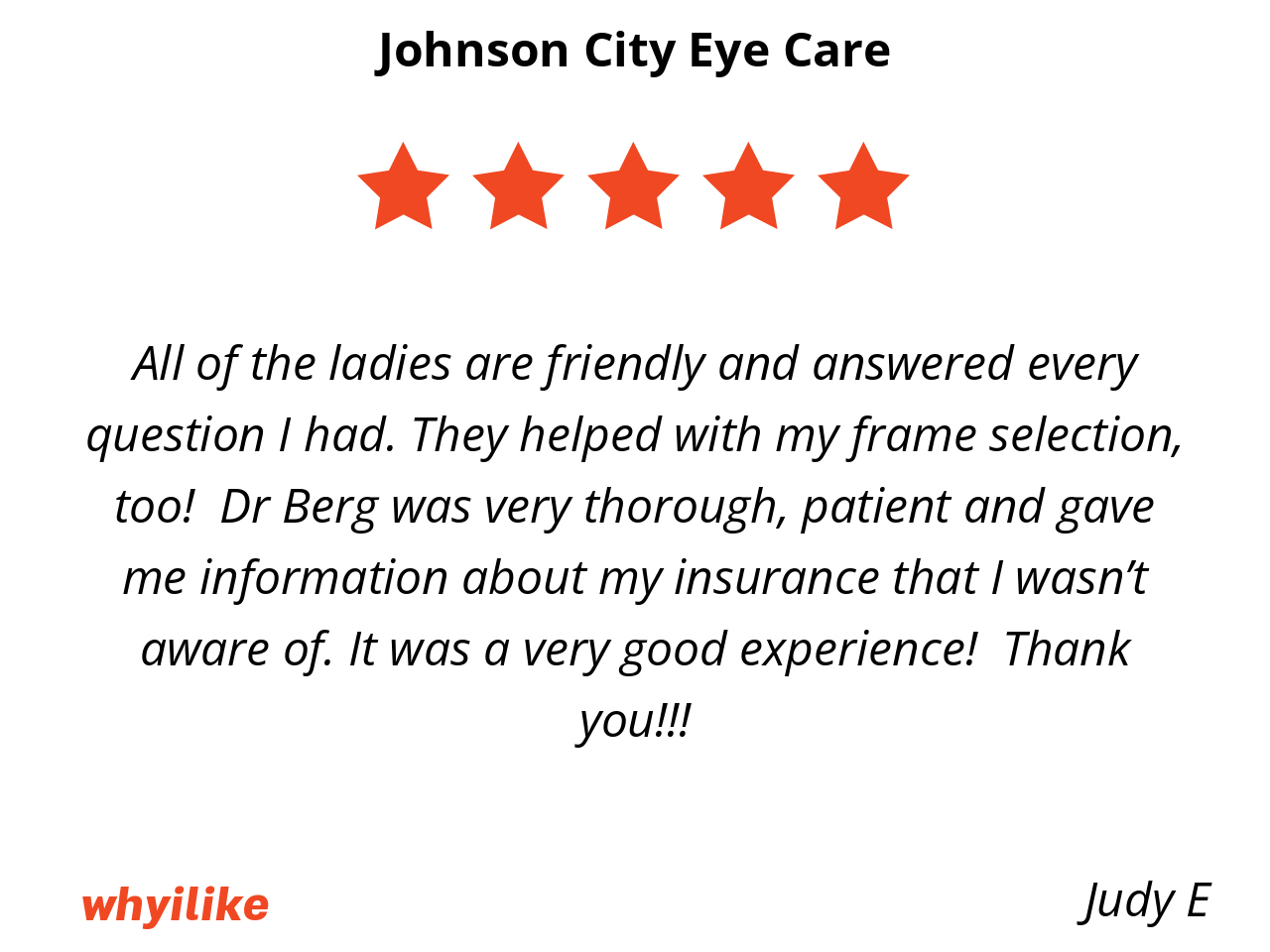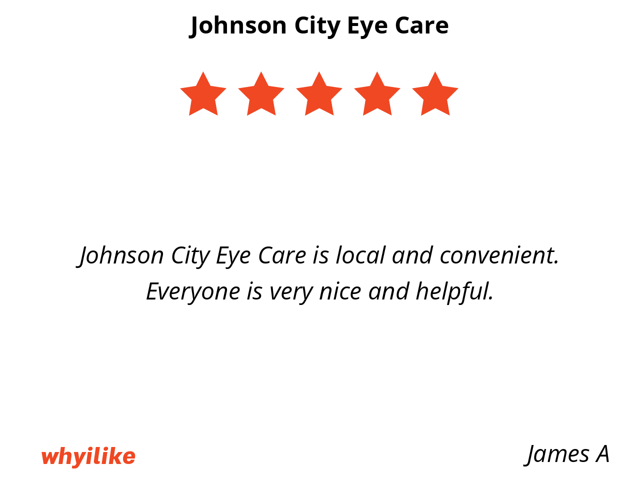 Johnson City Eye Care is local and convenient. Everyone is very nice and helpful.