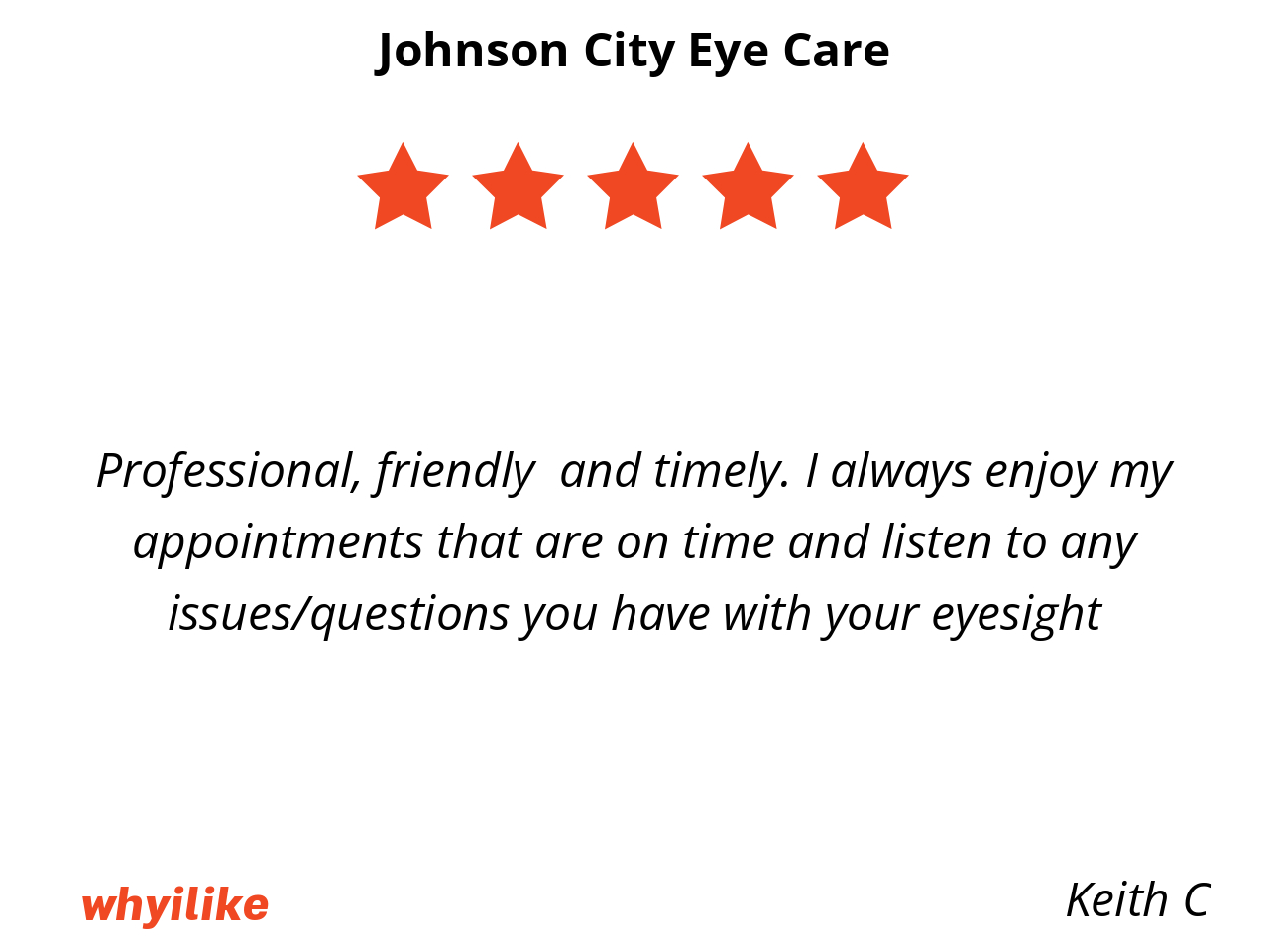 Professional, friendly and timely. I always enjoy my appointments that are on time and listen to any issues/questions you have with your eyesight