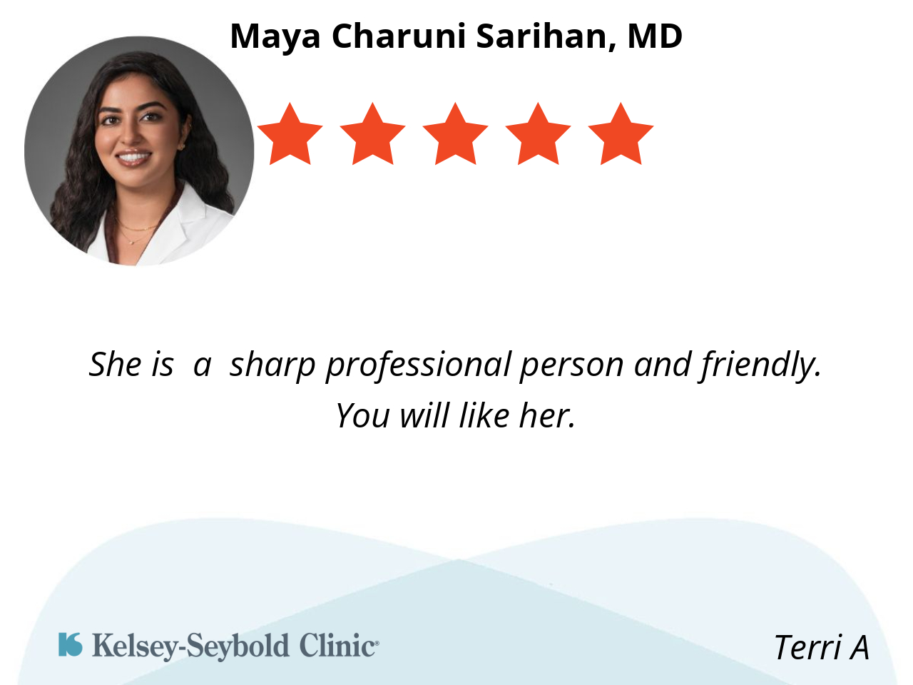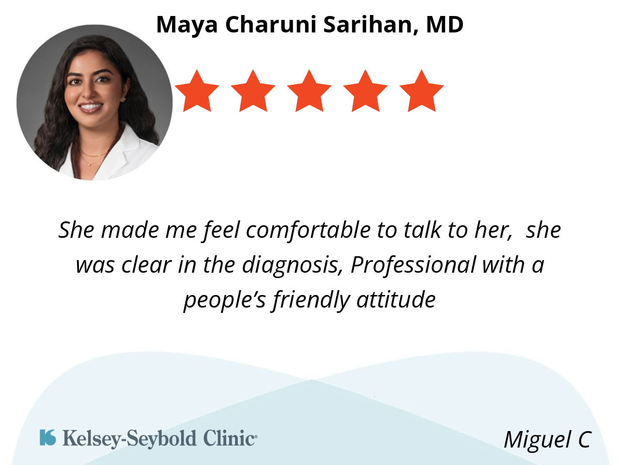 She made me feel comfortable to talk to her, she was clear in the diagnosis, Professional with a people’s friendly attitude