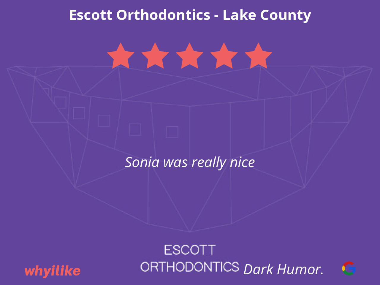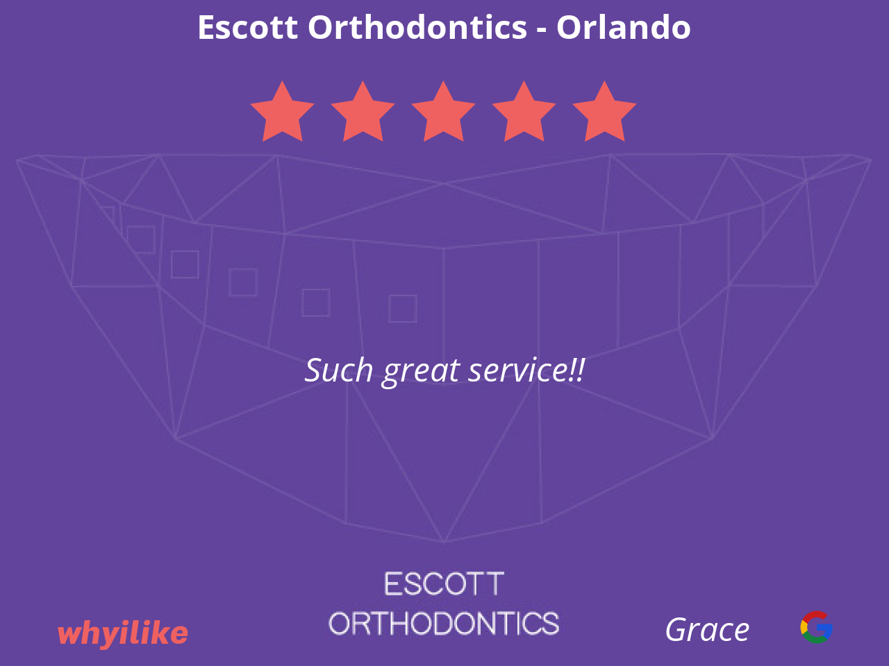 We have nothing but great things to say about Escott and the entire office. My daughter, not almost 15 years old, has enjoyed the experience and looks forward to her date of removal coming up. Maddi, often does a fantastic job keeping her in the know of what is happening and explaining the process to to her. I as a mother of several children at once in braces and 1 more to go would recommend Escott over and over 100 stars!