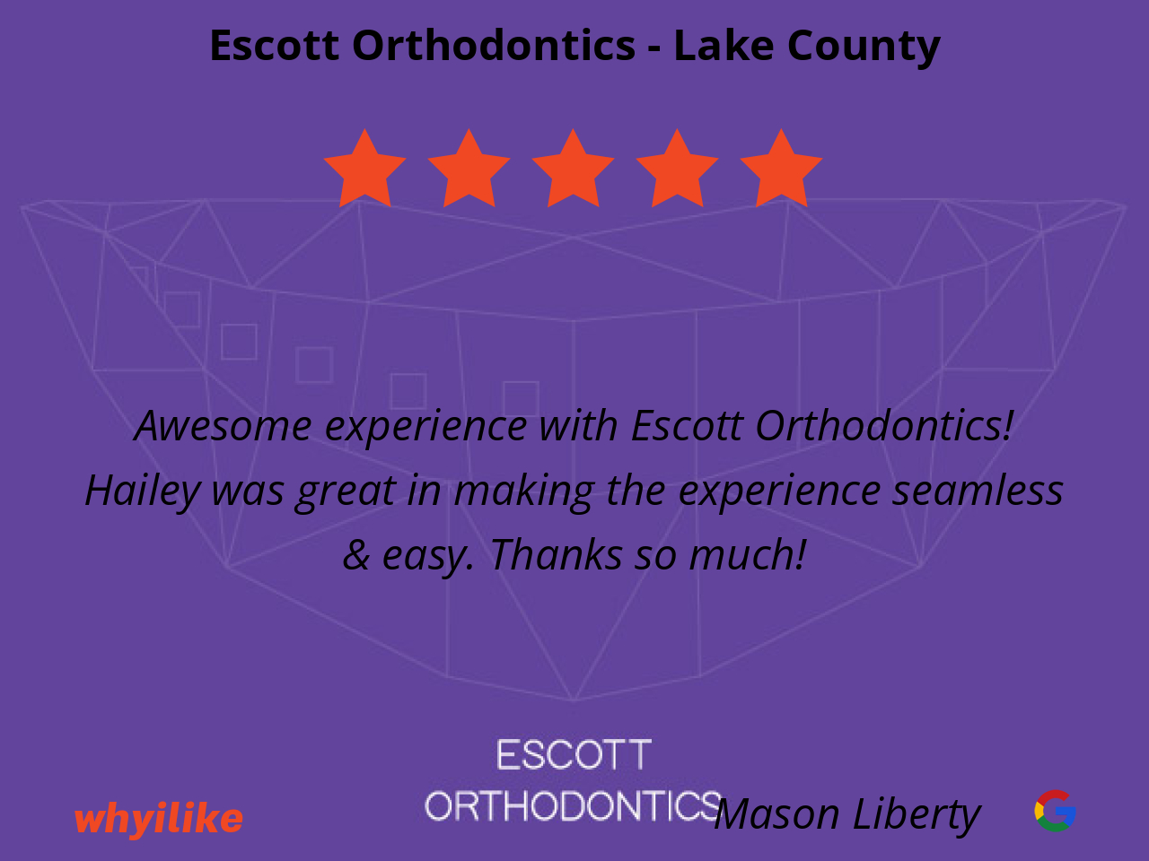 Awesome experience with Escott Orthodontics! Hailey was great in making the experience seamless & easy. Thanks so much!