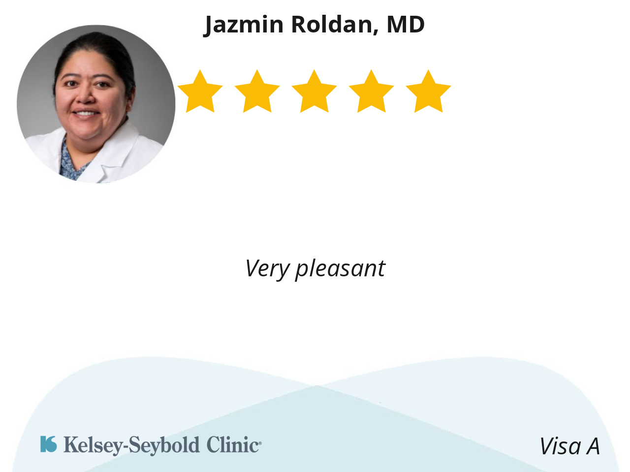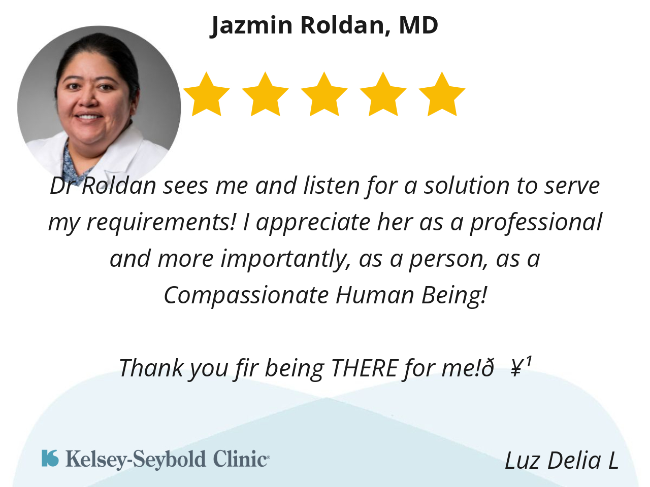 Dr Roldan sees me and listen for a solution to serve my requirements! I appreciate her as a professional and more importantly, as a person, as a Compassionate Human Being!
