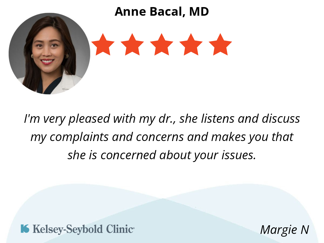 Dr. Bacal always explain my condition to me. She doesn’t mind you asking questions.