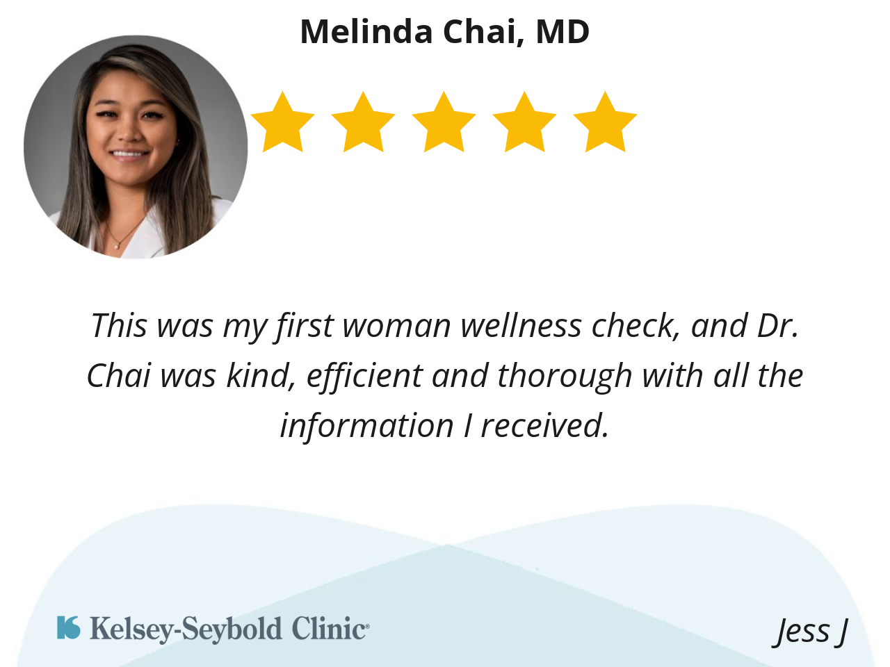 This was my first woman wellness check, and Dr. Chai was kind, efficient and thorough with all the information I received.
