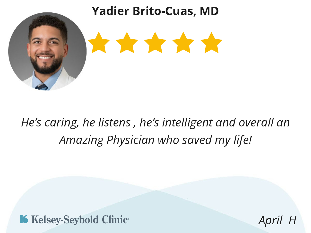 He’s caring, he listens , he’s intelligent and overall an Amazing Physician who saved my life!
