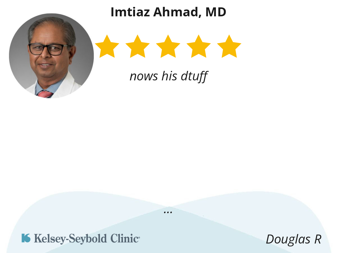 Dr. Ahmad was thorough and efficient. He was a good steward of my time and his. Also, proposed a good treatment plan.