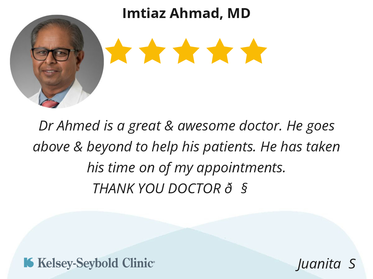 Dr Ahmed is a great & awesome doctor. He goes above & beyond to help his patients. He has taken his time on of my appointments.