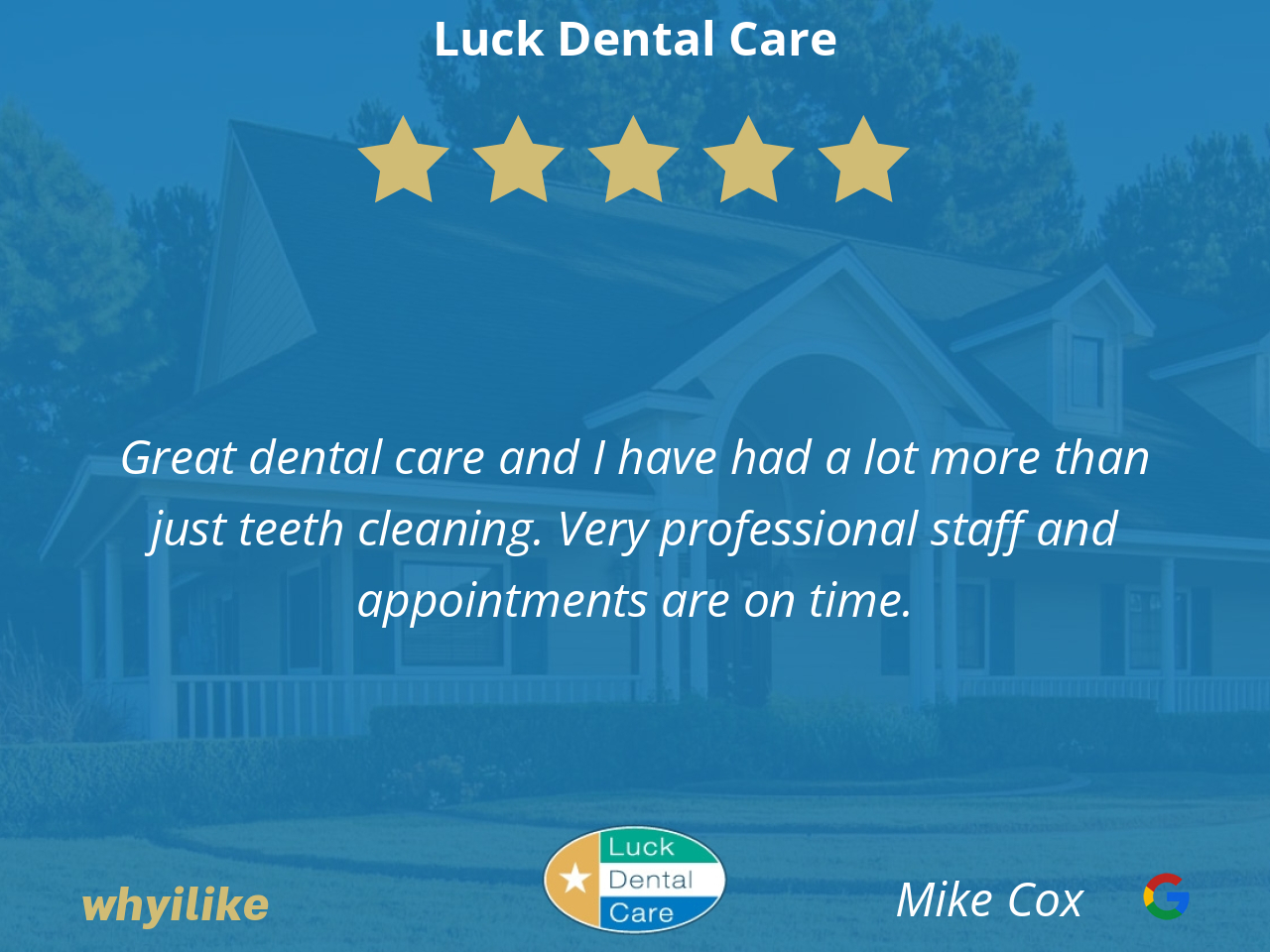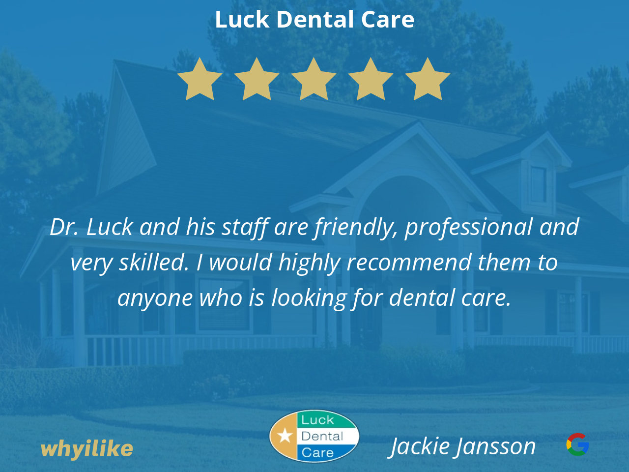 Dr. Luck and his staff are friendly, professional and very skilled. I would highly recommend them to anyone who is looking for dental care.
