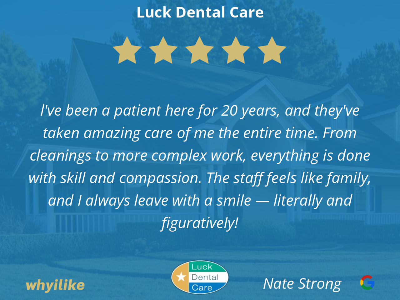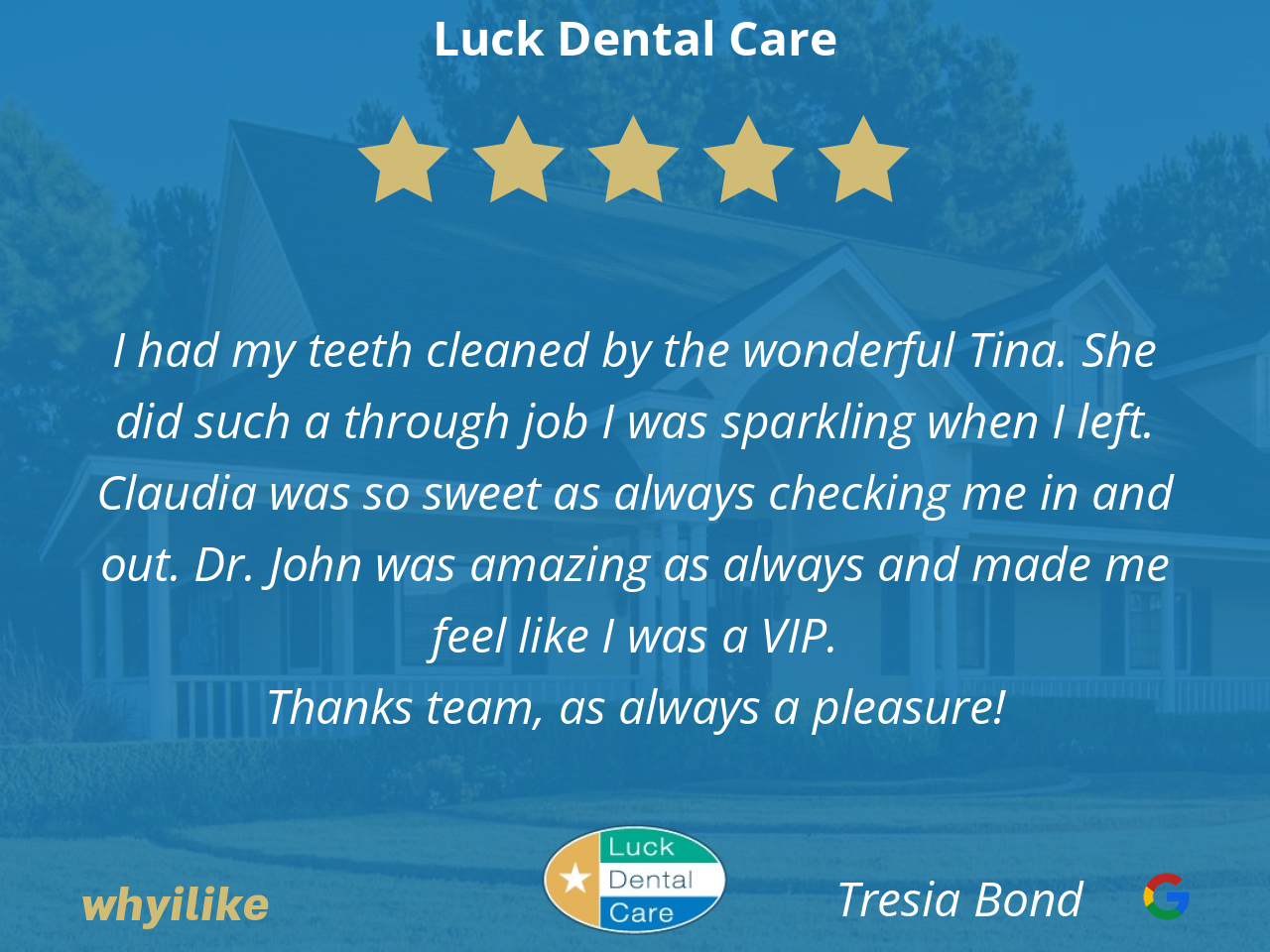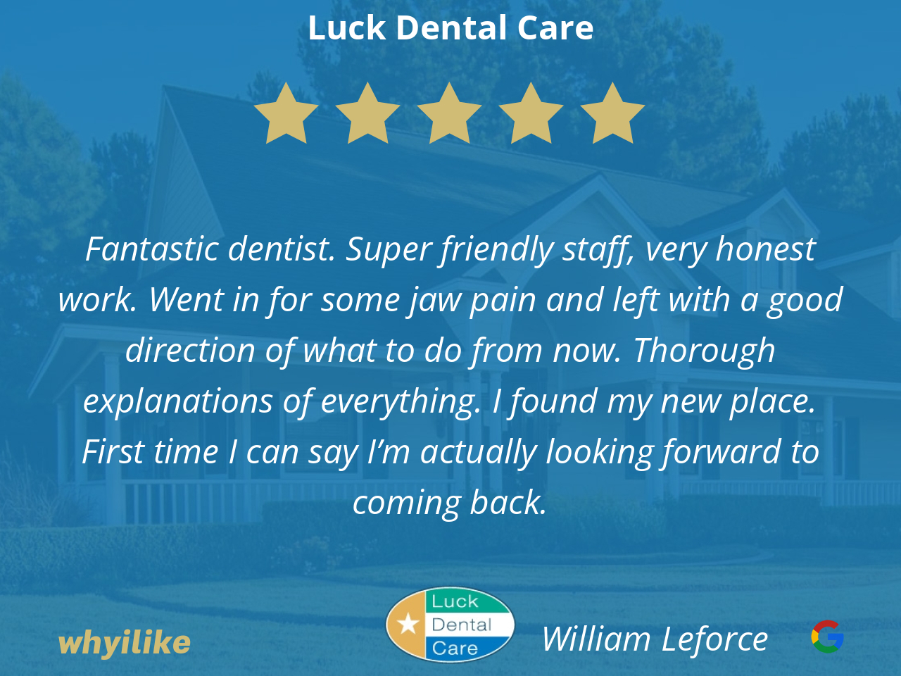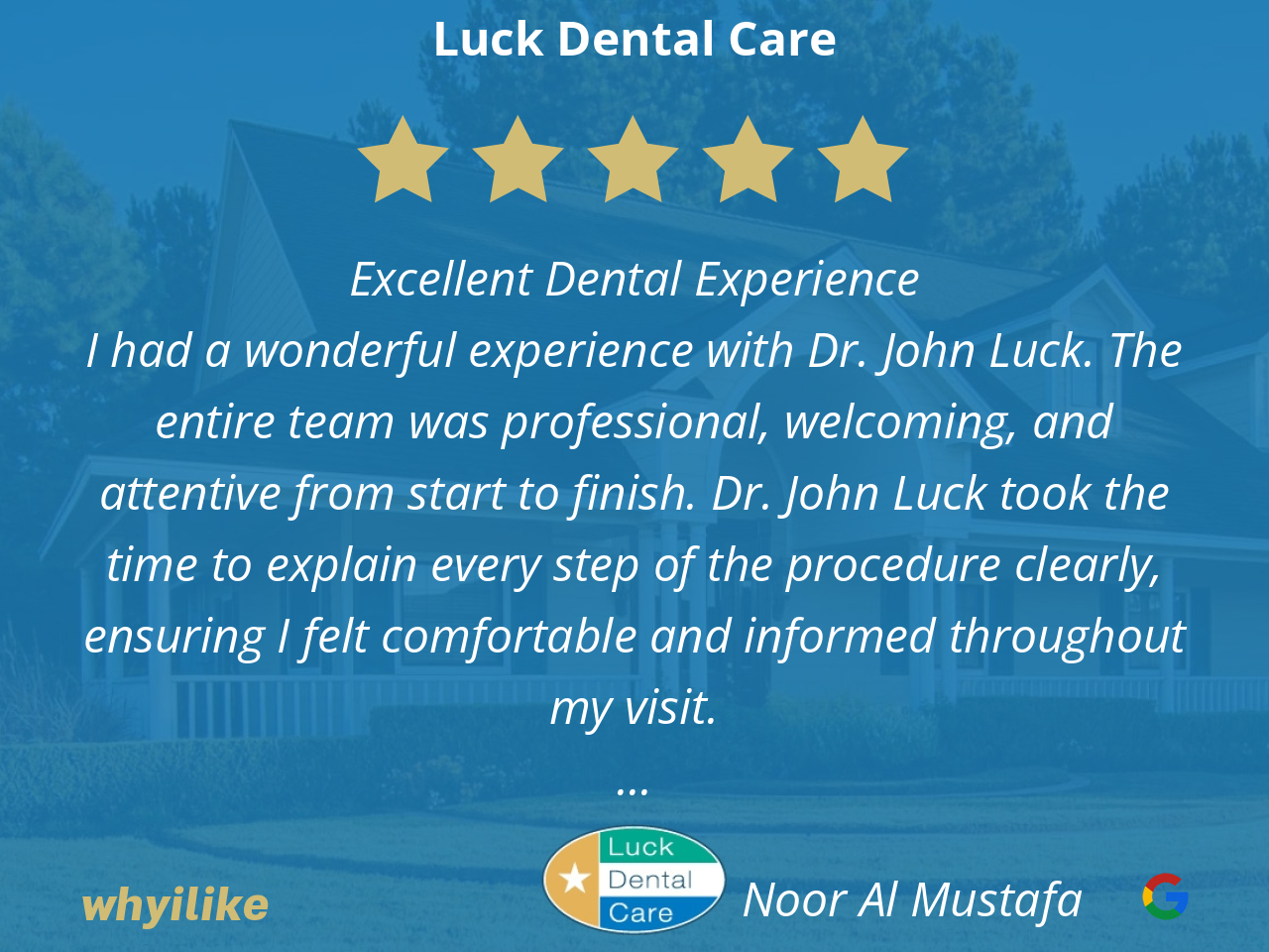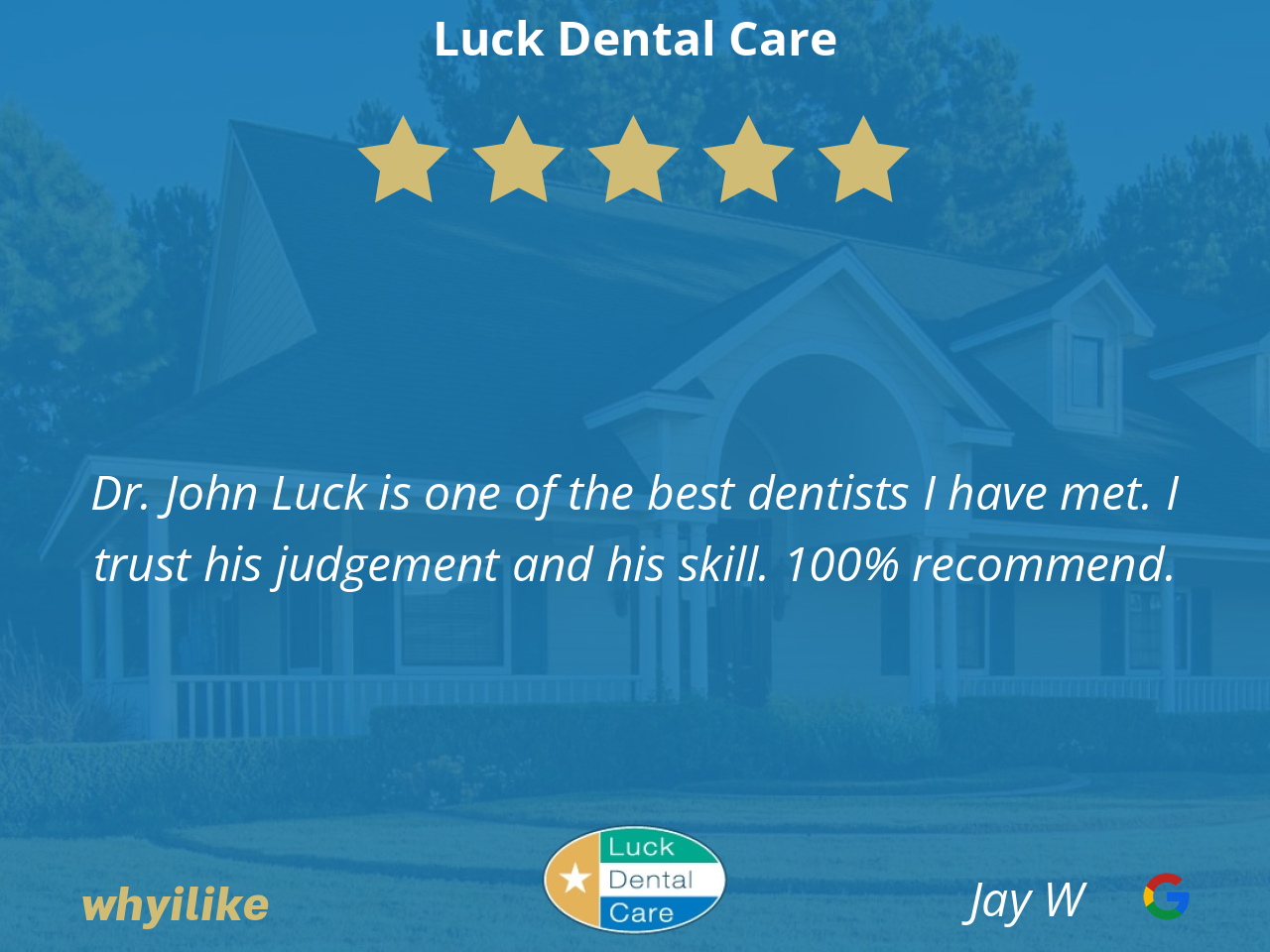 I highly recommend Dr. John Luck/ Luck Dental Care to anyone looking for a skilled, compassionate, and professional dentist. I’ll definitely be returning for all my future dental care needs.