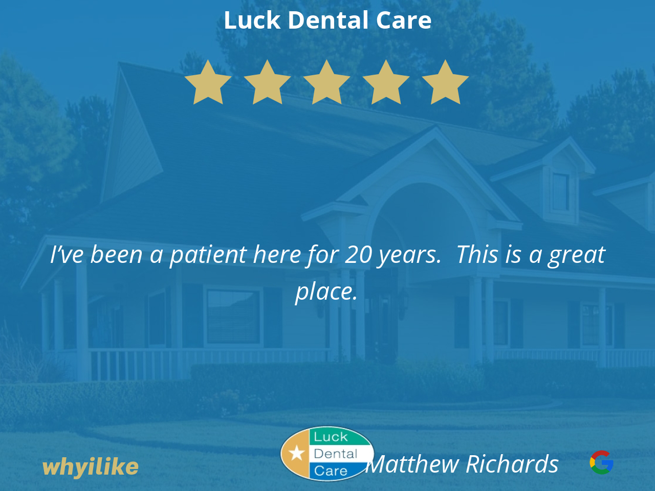 We have been patients at Luck Dental Care for almost 20 years and have always had such a wonderful experience! The entire staff is so welcoming and caring, and they really take the time to get to know you! Can’t recommend them enough!