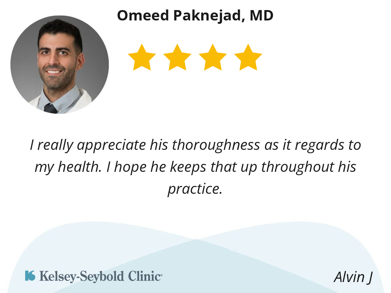 Dr. Paknejad was personable and very thorough and knowledgeable in assessing the health issue I was having.
