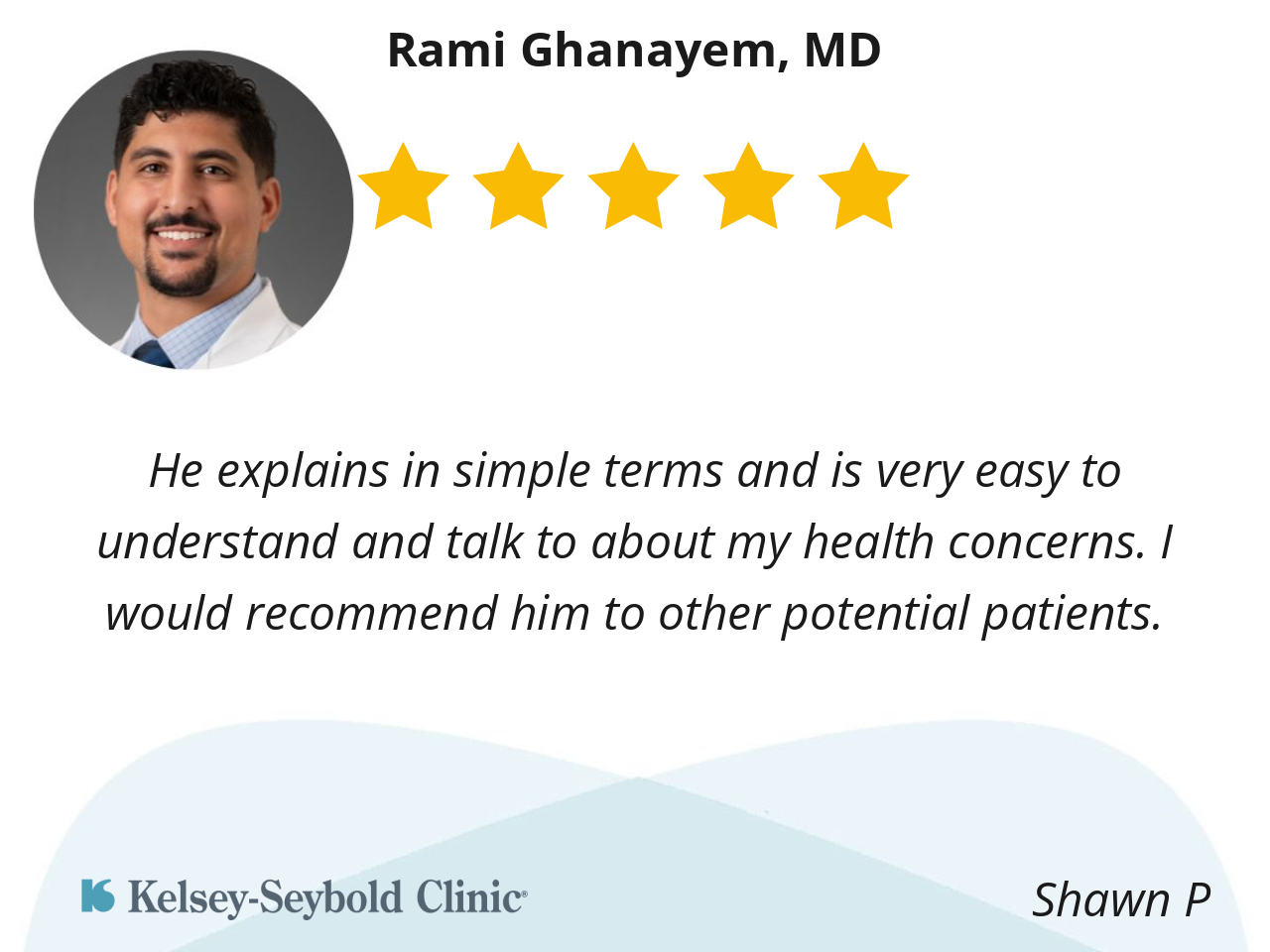 Dr. Ghanayem is incredibly knowledgeable and took the time to answer all my questions. The entire team at Family Medicine was friendly and efficient, I felt genuinely cared for during my visit. He explained everything clearly and made sure I understood my diagnosis. I would highly recommend Dr. Ghanayem to anyone.
