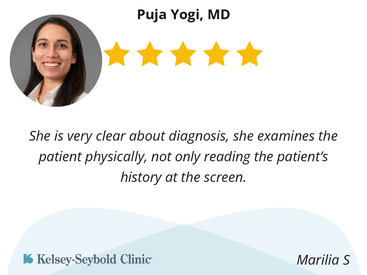 Dr.Yogi…took the time to educate me on my health issues.She explained everything to me in understandable terms.I really appreciate her.Thank you…Dr.Yogi