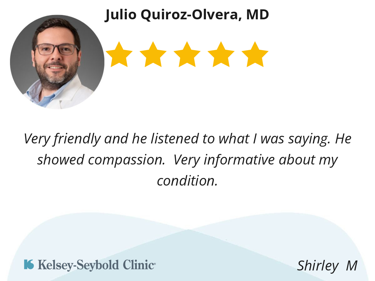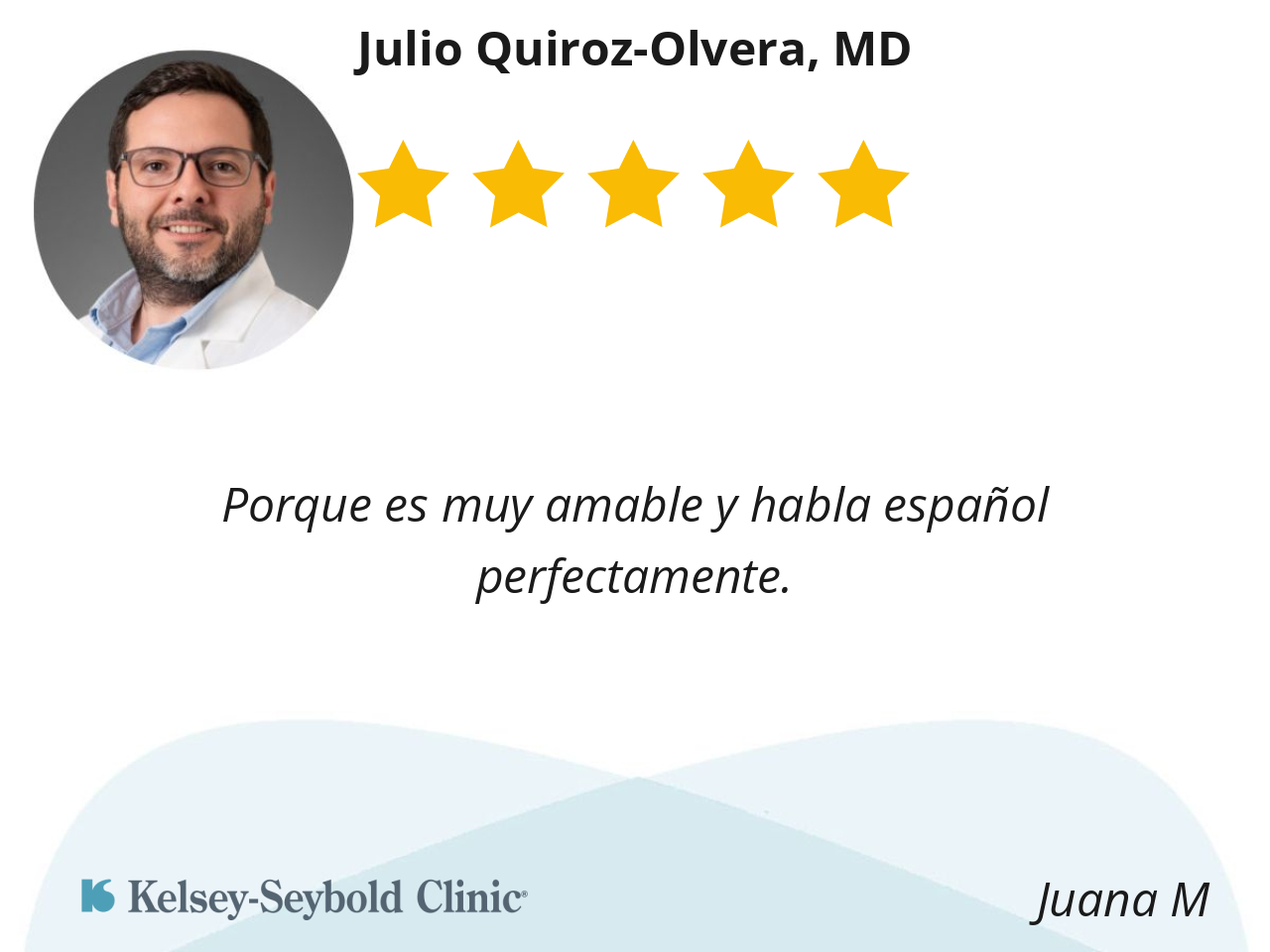 Dr. Julio is always attentive, dedicated and very professional with patients. He makes you feel confident and helps solve any disease or discomfort.