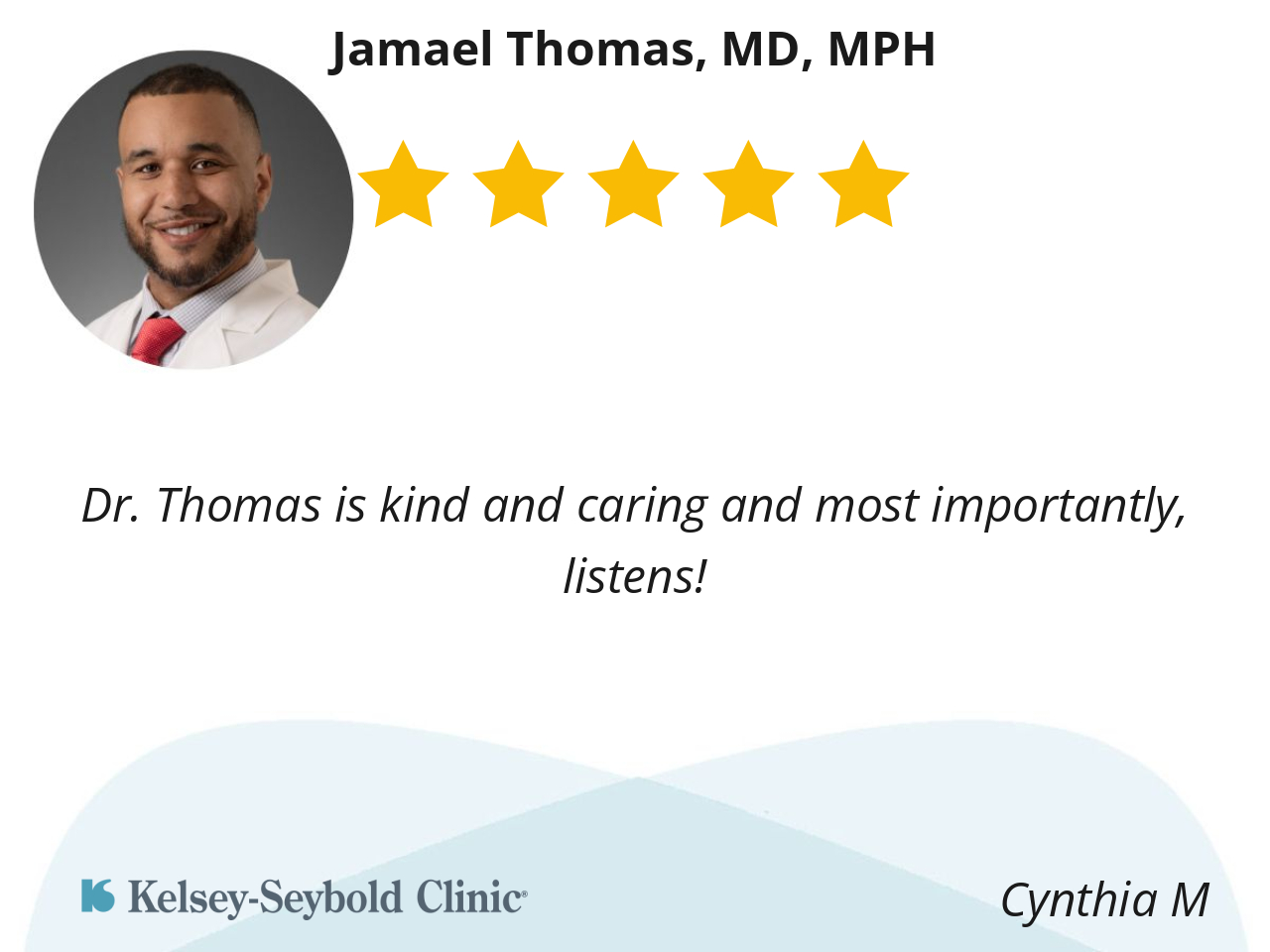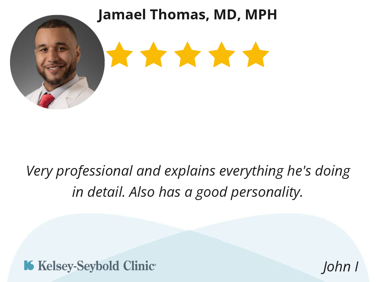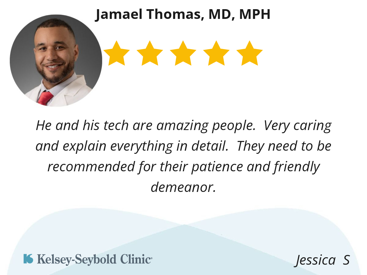 Dr Thomas is very nice and takes the time to answer questions and explain what he is going to do and why and I truly value that! Many times I have gone to a doctor and he takes care of a problem but doesn’t take time to make me feel comfortable about what he is doing or explaining what and why of the process he is starting!