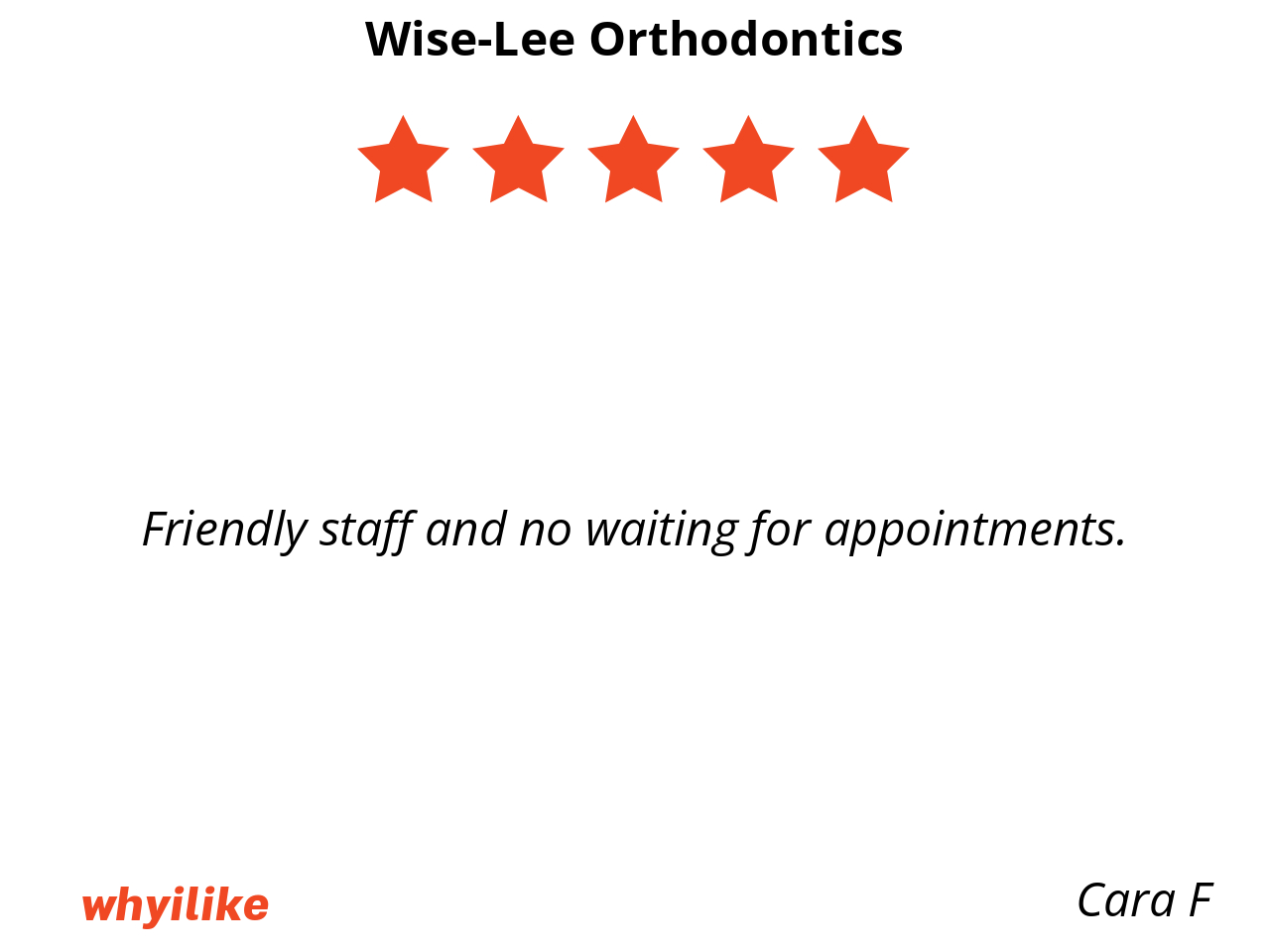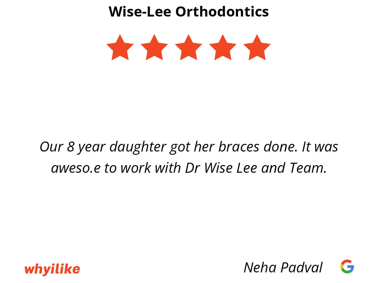 Great experience with Doctors - Wise and Lee. The staff was friendly, appointments were always on time, and the treatment was clearly explained at every step. My son’s teeth look amazing now, and I couldn’t be happier with the results. Highly recommended for anyone considering orthodontic care!