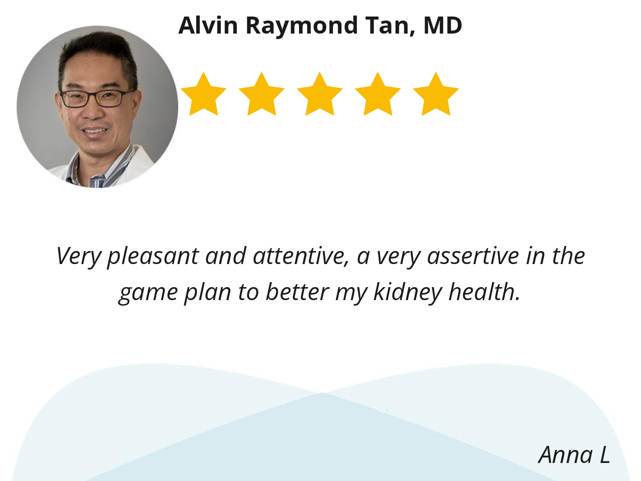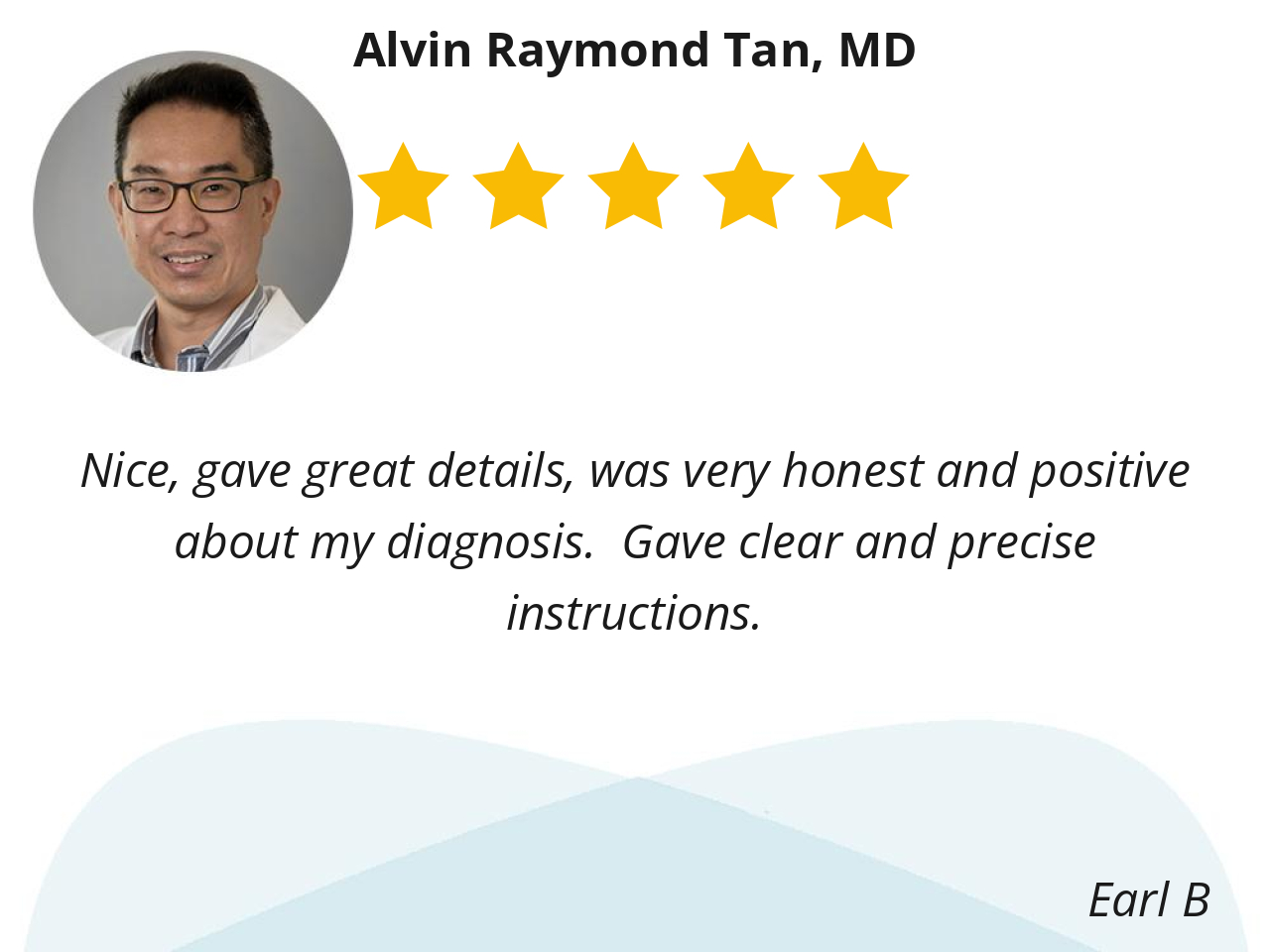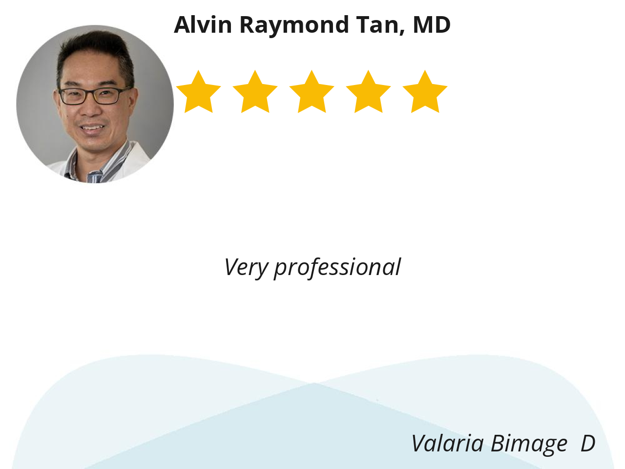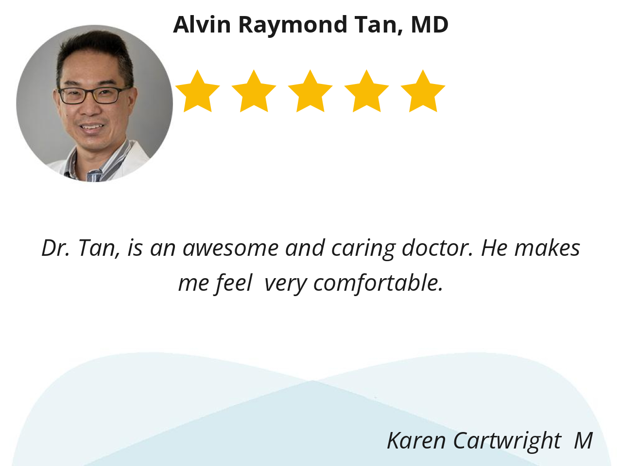 Dr. Tan is consistently professional, pleasant, and informative. Our conversations always contribute to my sense of security. I sincerely appreciate his reliable attention concerning my condition!!!