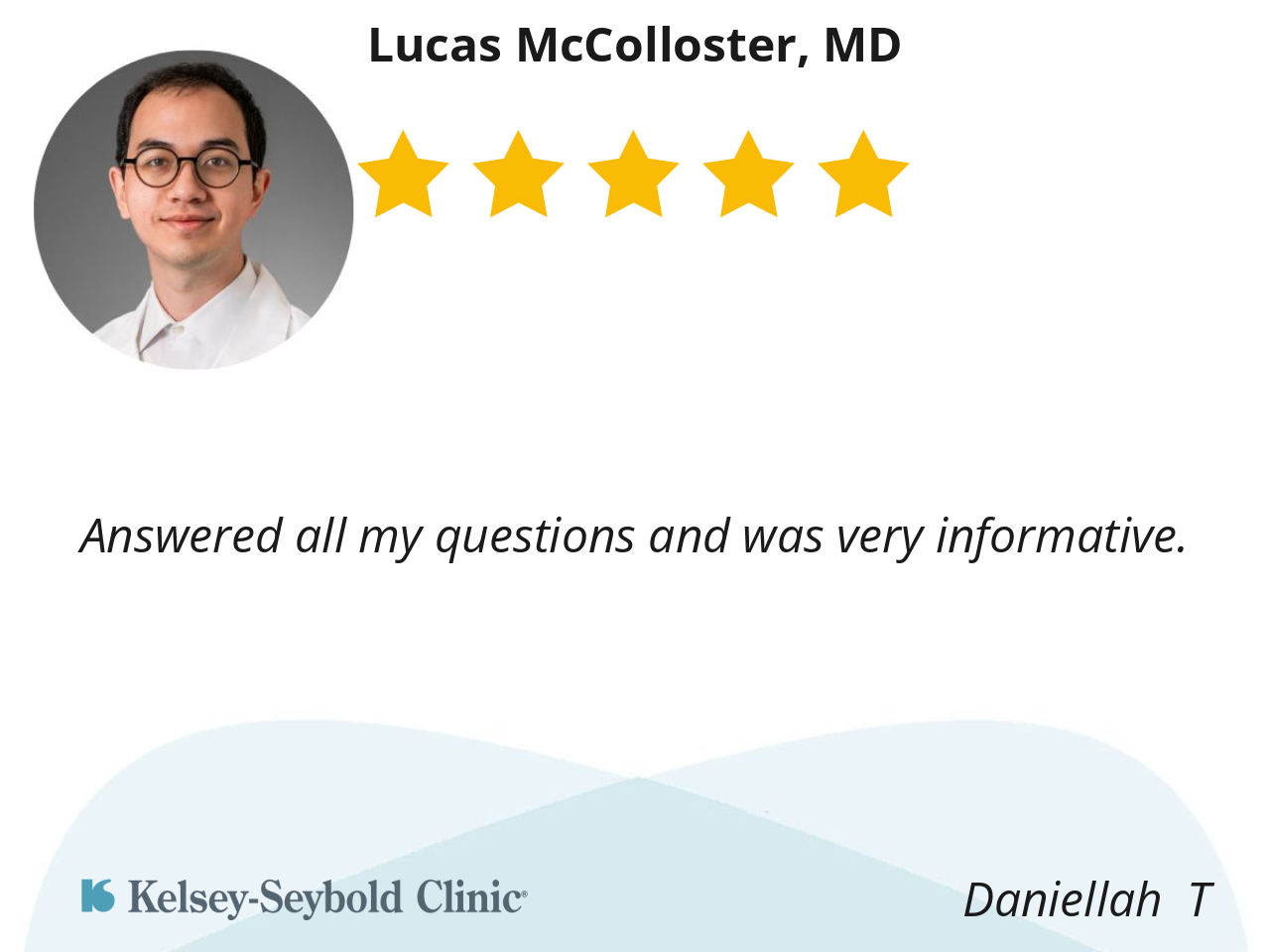 I've only seen Dr McColloster once, but my impression was that he is very capable and through. Nice person also~