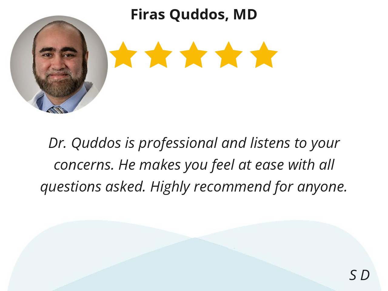 Dr. Quddos is professional and listens to your concerns. He makes you feel at ease with all questions asked. Highly recommend for anyone.