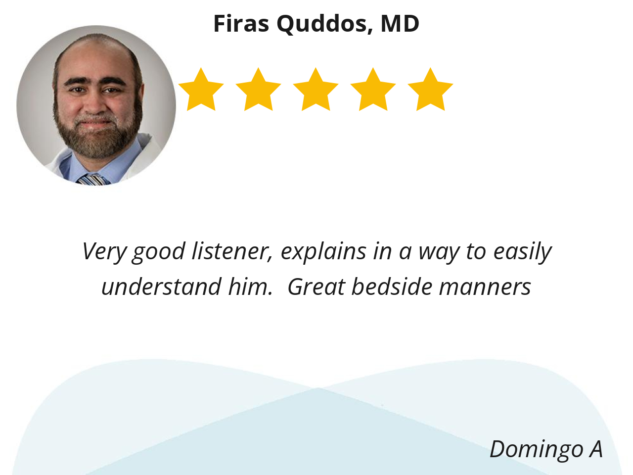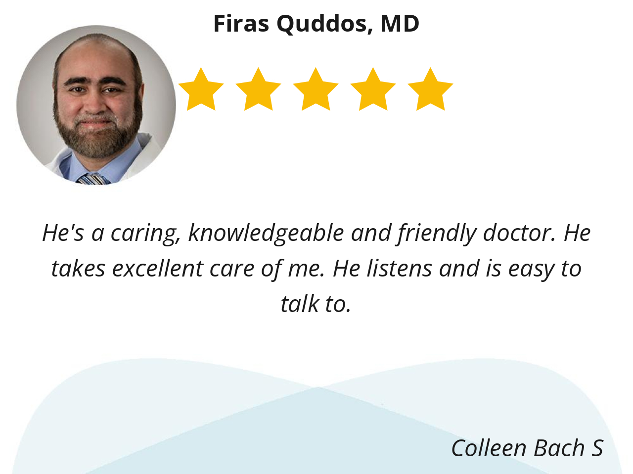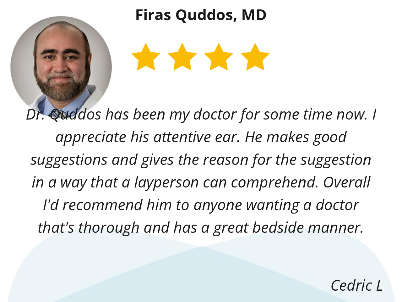 Dr. Quddos has been my doctor for some time now. I appreciate his attentive ear. He makes good suggestions and gives the reason for the suggestion in a way that a layperson can comprehend. Overall I'd recommend him to anyone wanting a doctor that's thorough and has a great bedside manner.