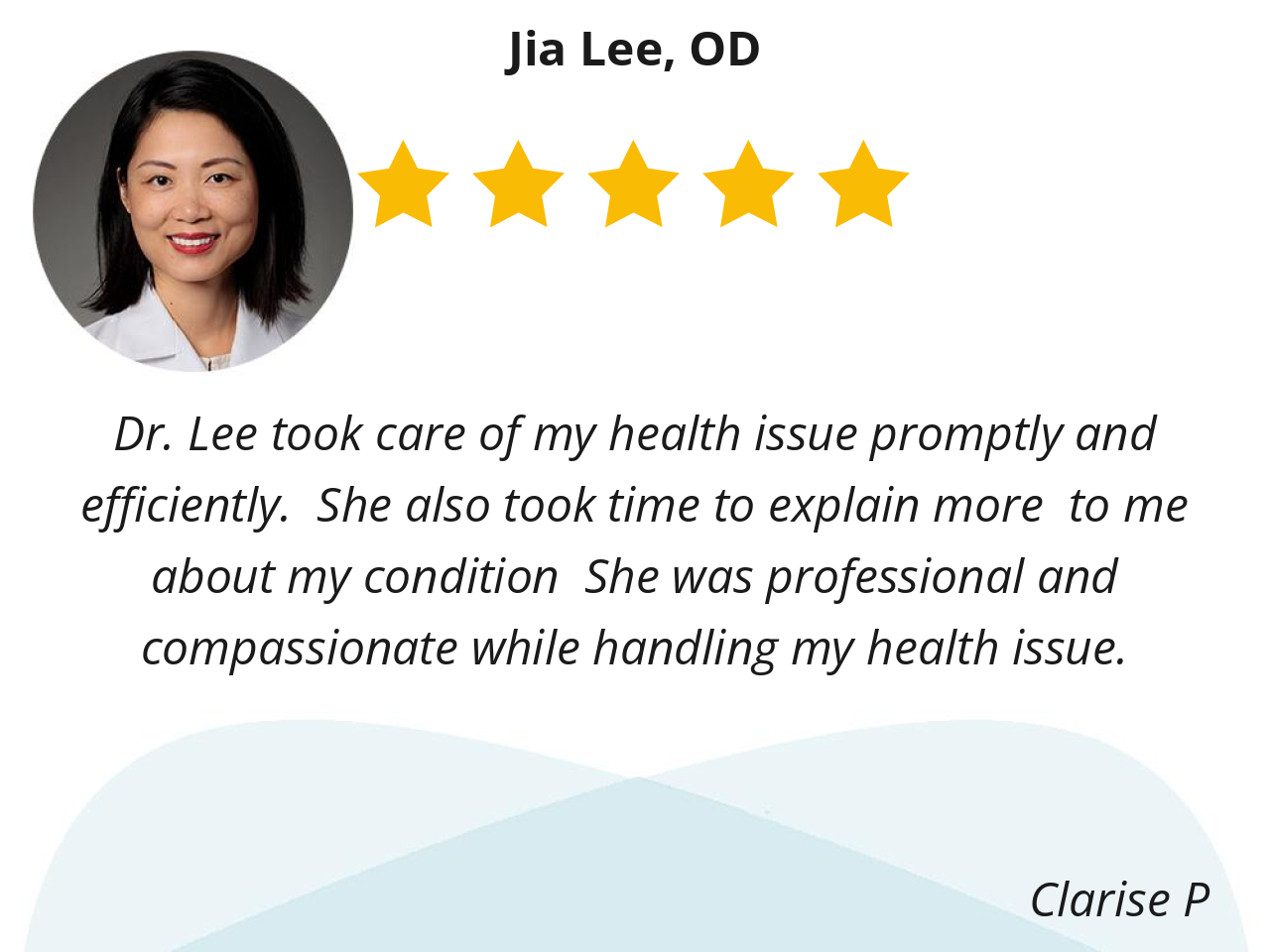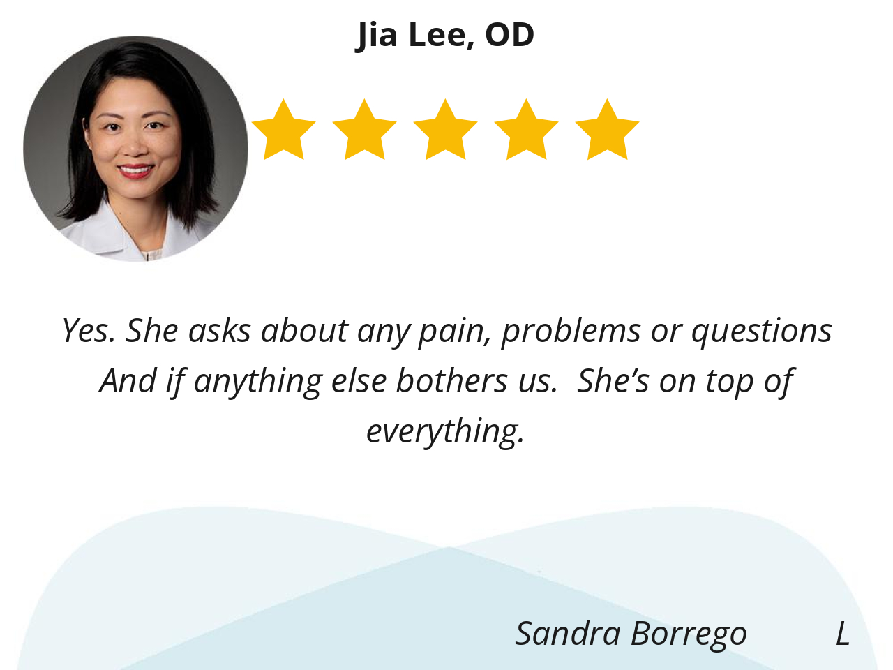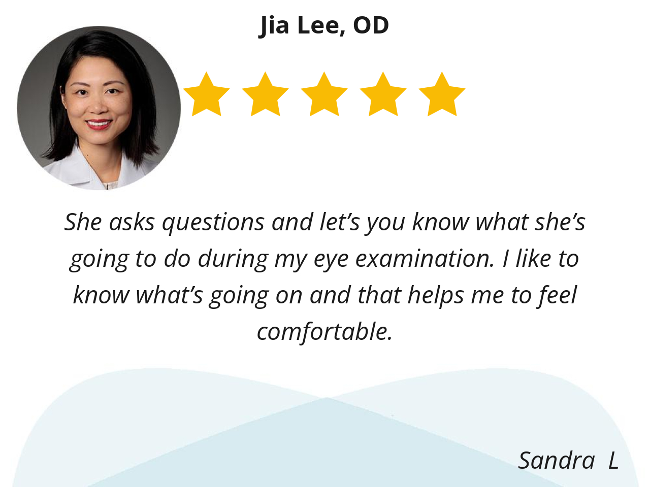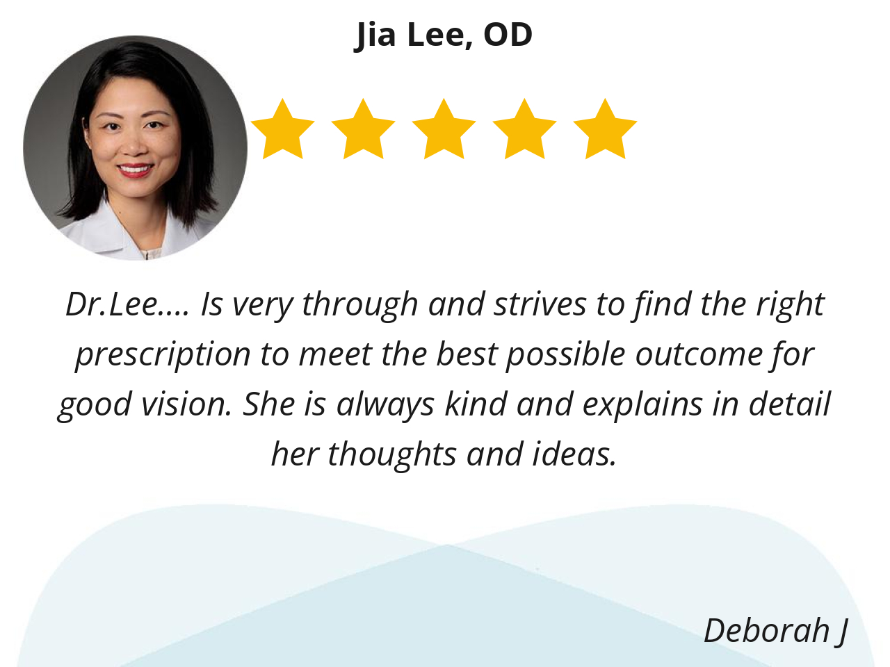 Dr.Lee…. Is very through and strives to find the right prescription to meet the best possible outcome for good vision. She is always kind and explains in detail her thoughts and ideas.