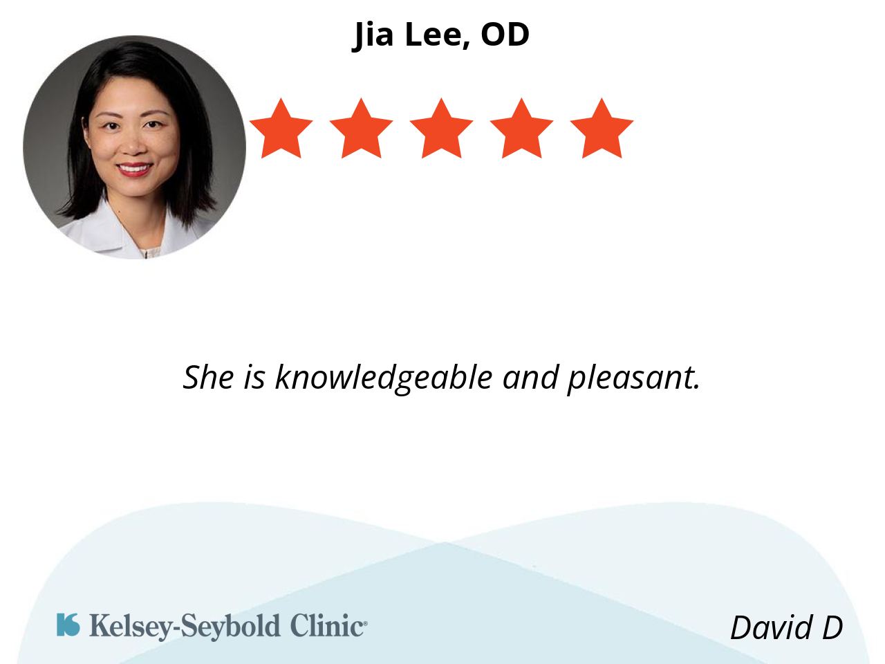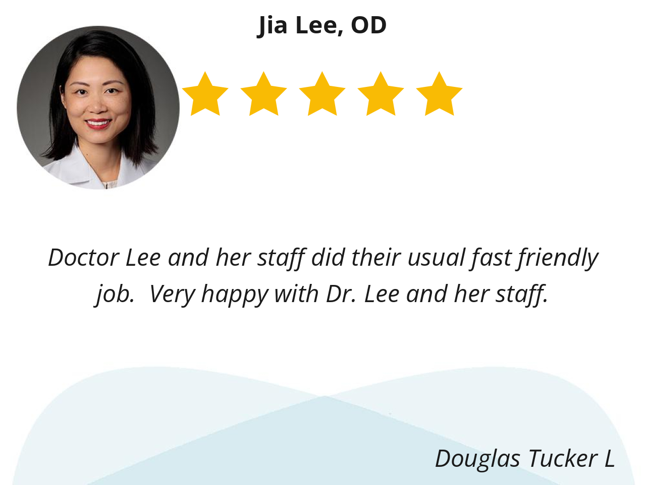 Doctor Lee and her staff did their usual fast friendly job. Very happy with Dr. Lee and her staff.